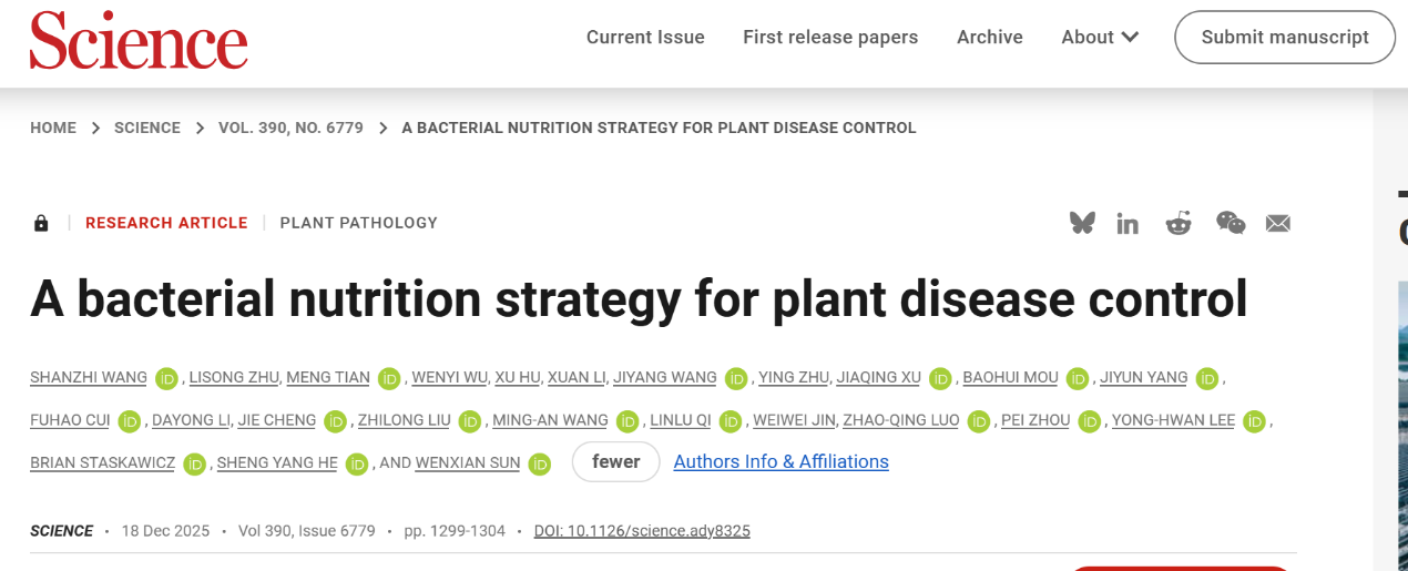 【科研动态】公司在Science发表水稻细菌病害研究领域重要进展