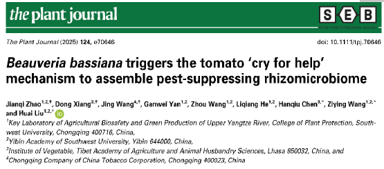 【科研动态】公司刘怀教授团队在TOP期刊发表科研成果:球孢白僵菌触发番茄“求救”机制以招募...
