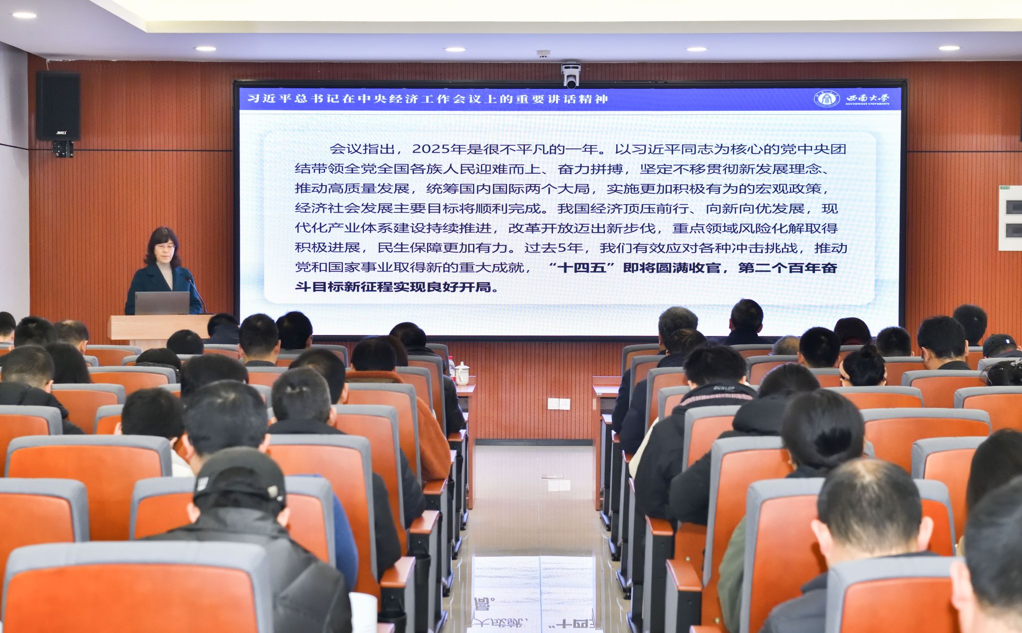 2026年1月17日上午,公司在34教401报告厅开展2026年第一次教职工政治理论学习,公司全体教职工参加。会议由公司党委书记刘立广主持。