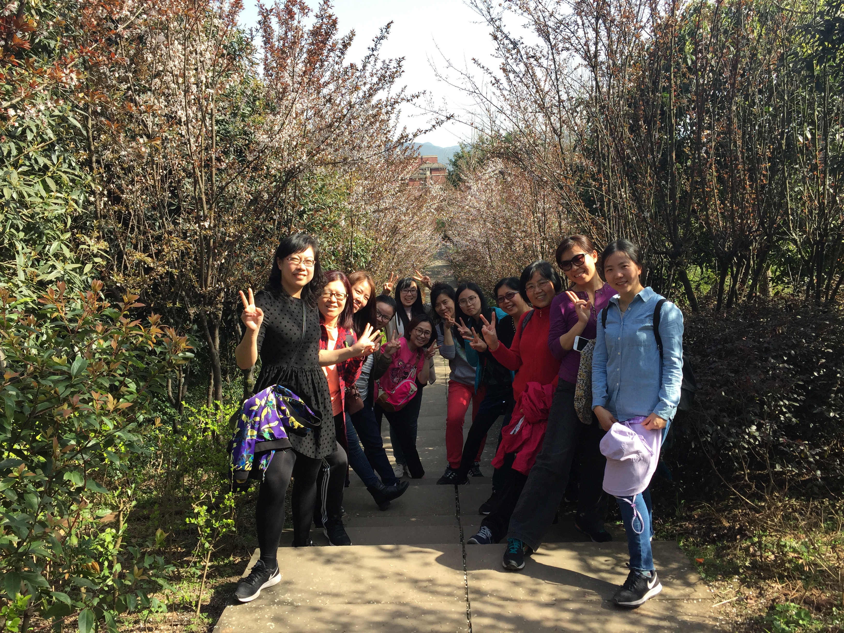 下午,工会组织女教工齐聚缙云山健身梯,举行三八节登山活动,女同胞们热情高涨,一边呼吸着山上新鲜的空气,一边饱览秀山美景,尽情享受着登山的乐趣。大家三五成群结伴而行,或拾级而上,或开心聊天,或合影留念,意趣盎然。下山后,老师们举行了集体温泉,并共度晚餐。