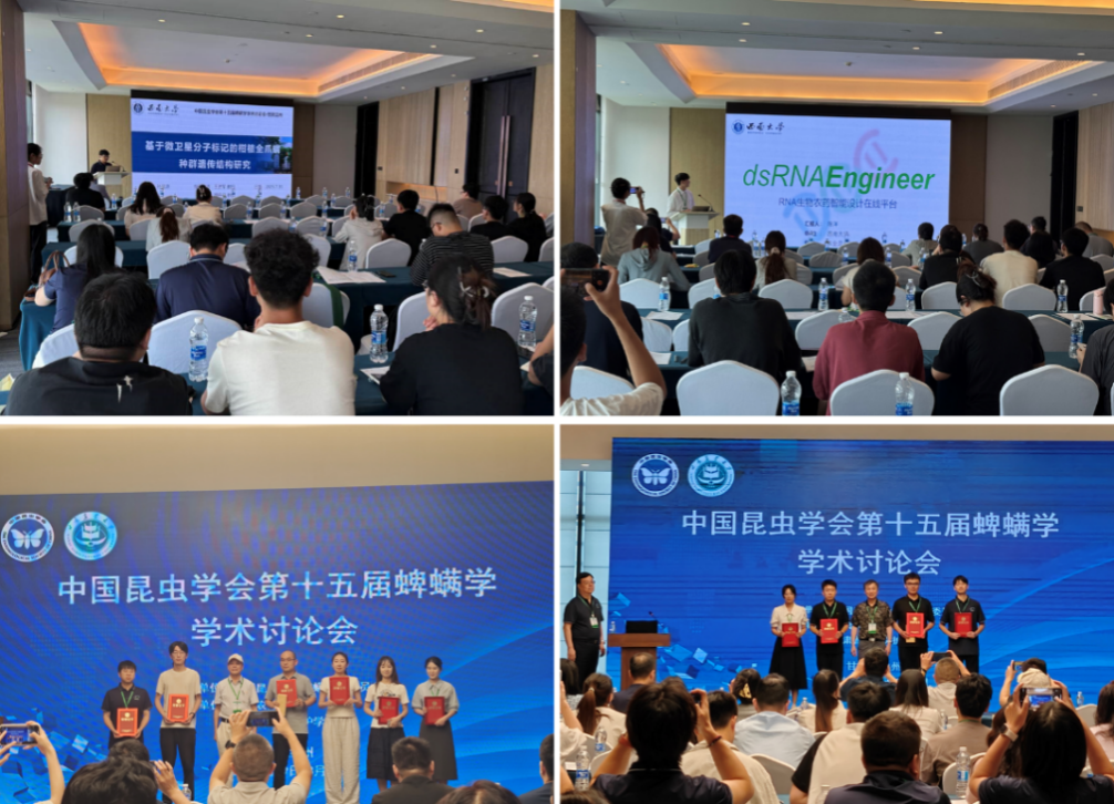 7月31日,大会共设三个分会场,108名科研工作者踊跃参与并作专题报告。公司共有11位研究生作口头报告,展现了扎实的科研实力与学术风采。其中,陈洋同学以“RNA生物农药智能设计在线平台”为题,向大家介绍了一种RNA生物农药高效、安全的设计方案,荣获大会报告一等奖;孙晟源同学以“基于微卫星分子标记的柑桔全爪螨种群遗传结构研究”为题,汇报了团队对11省16个柑橘全爪螨地理种群的遗传多样性、遗传结构、抗性基因流及遗传分化等方面研究进展,荣获大会报告二等奖;姜智馨以拟除虫菊酯杀螨剂特异性诱导朱砂叶螨表皮增厚的机制为题,通过透射电子显微镜、免疫组化、分子对接、MST等主要研究手段,明确了叶螨感受拟除虫菊酯杀螨剂的应答通路,荣获大会报告三等奖。