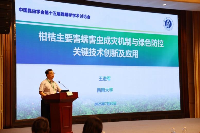 本次会议特邀新西兰皇家科公司张智强院士、bevictor伟德王进军教授、河北师范大学刘敬泽教授、南京农业大学洪晓月教授等10位国内外蜱螨学领域的知名专家学者作了大会报告。其中,王进军教授代表团队对二十余年来在柑桔主要害螨害虫成灾机制与绿色防控关键技术创新与应用的研究领域工作进行了详细报告,受到了参会学者的广泛关注。