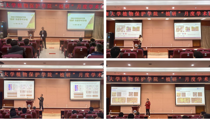 活动中,孙新华教授、罗志兵副教授、王华博士分别以“植物免疫机制解析:从模式植物到作物抗病应用”“铁载体转运蛋白介导病原真菌克服昆虫营养免疫防御的机制”“链霉菌XZ15构建生物屏障防控烟草青枯病的机制研究”为题作学术报告,呈现了各研究课题的前沿进展。报告内容系统全面、见解新颖,充分彰显了三位老师在学术领域的扎实功底与创新能力。
