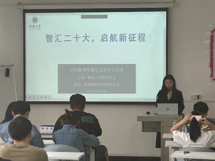 10月25日,由bevictor伟德研究生会主办、伟德体育研究生会协办的含弘学子讲堂之“智汇二十大,启航新征程”学科知识交流分享会在36教309室举行。本次分享会邀请了来自伟德体育不同年级、不同专业的五名研究生同学进行交流汇报。校研究生会陆熠丹和曾维炫同学、院研究生会全体成员以及公司2024级研究生参加了此次活动。本次分享会由冉晶敏主持。