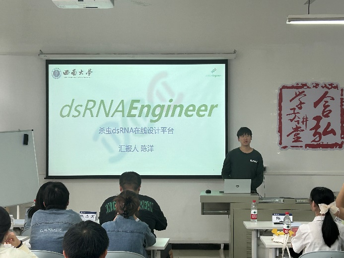 陈洋同学向我们介绍了其所在团队开发的在线工具dsRNAEngineer。他指出,目前对dsRNA设计的努力大多集中在基因序列水平,缺乏对特定物种整个转录组水平上基于RNAi的作用模式的全面分析,导致效率低下和dsRNA靶标探索不精确。其团队开发的在线工具dsRNAEngineer则可以打破这些限制,通过整合数百种害虫和非害虫转录组,进行全面合理的dsRNA设计,显著提升了dsRNA的设计效率。