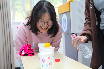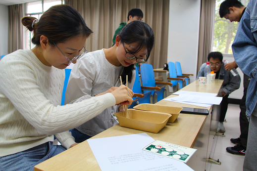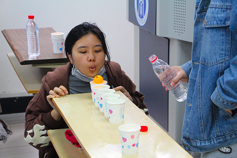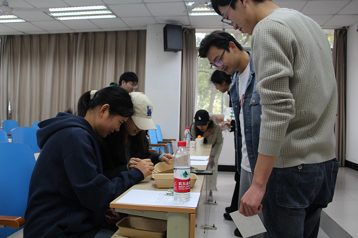 现场进行的游戏多为双人合作模式,如“二研擒珠”“纸飞机”“你来比我来猜”以及“猛龙过江”。在场的同学们随机成组,互相配合,共同前往指定地点进行打卡。同学们充分发挥团队合作精神,齐心协力完成了游戏任务。