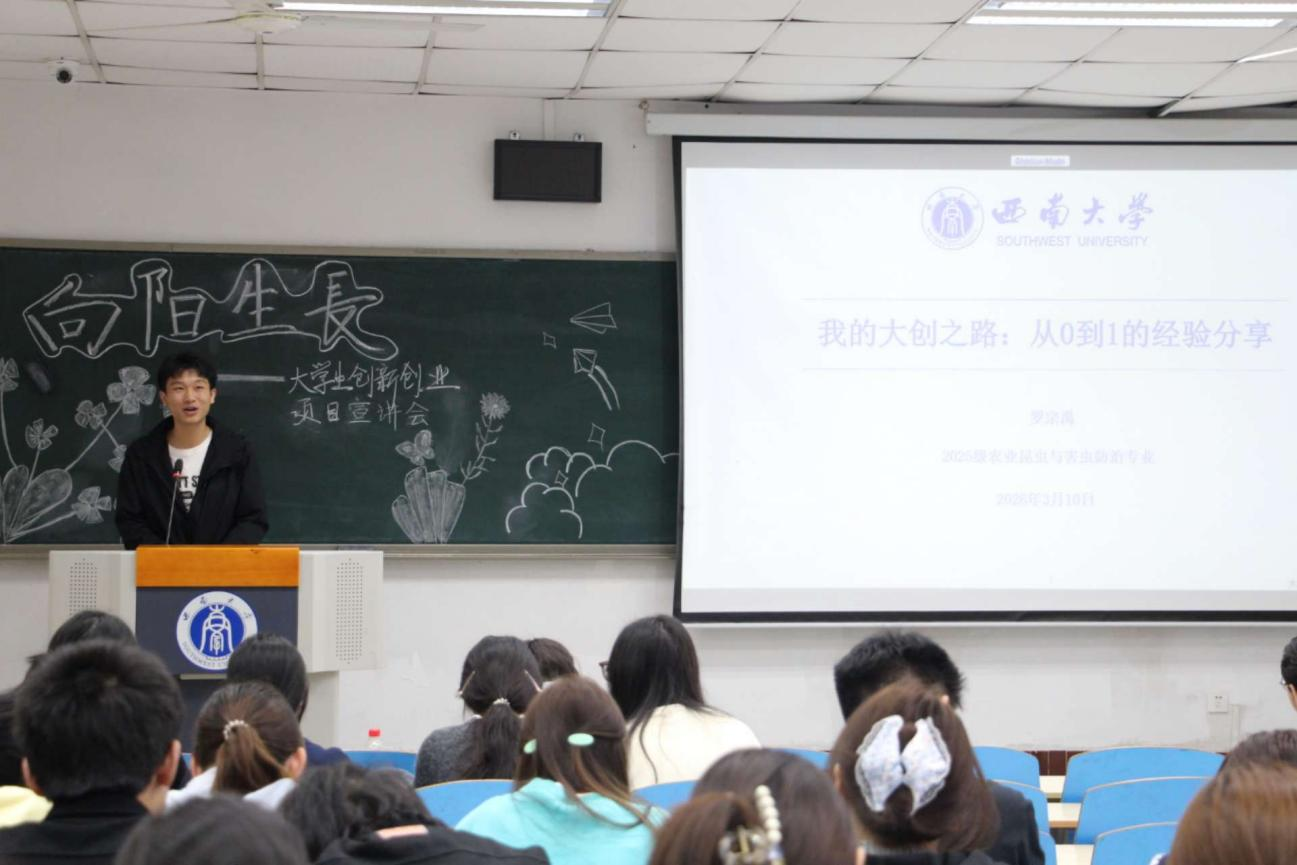 为扎实推进本科生创新创业教育,精准指导同学们开展老员工创新训练计划项目申报,帮助大家明晰流程、把握要点、提升申报质量,3月10日下午,伟德体育于32教312教室顺利举办老员工创新创业项目宣讲会。本次宣讲会邀请了公司副经理牛金志教授、2025级农业昆虫与害虫防治专业研究生罗宗禹、2025级农药学专业研究生蒲依婷主讲。公司辅导员严潇漪和近百名本科生到场参会。