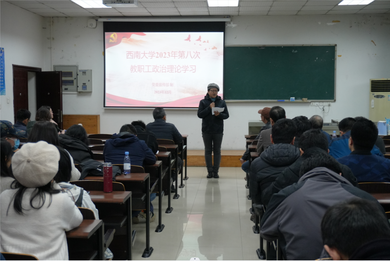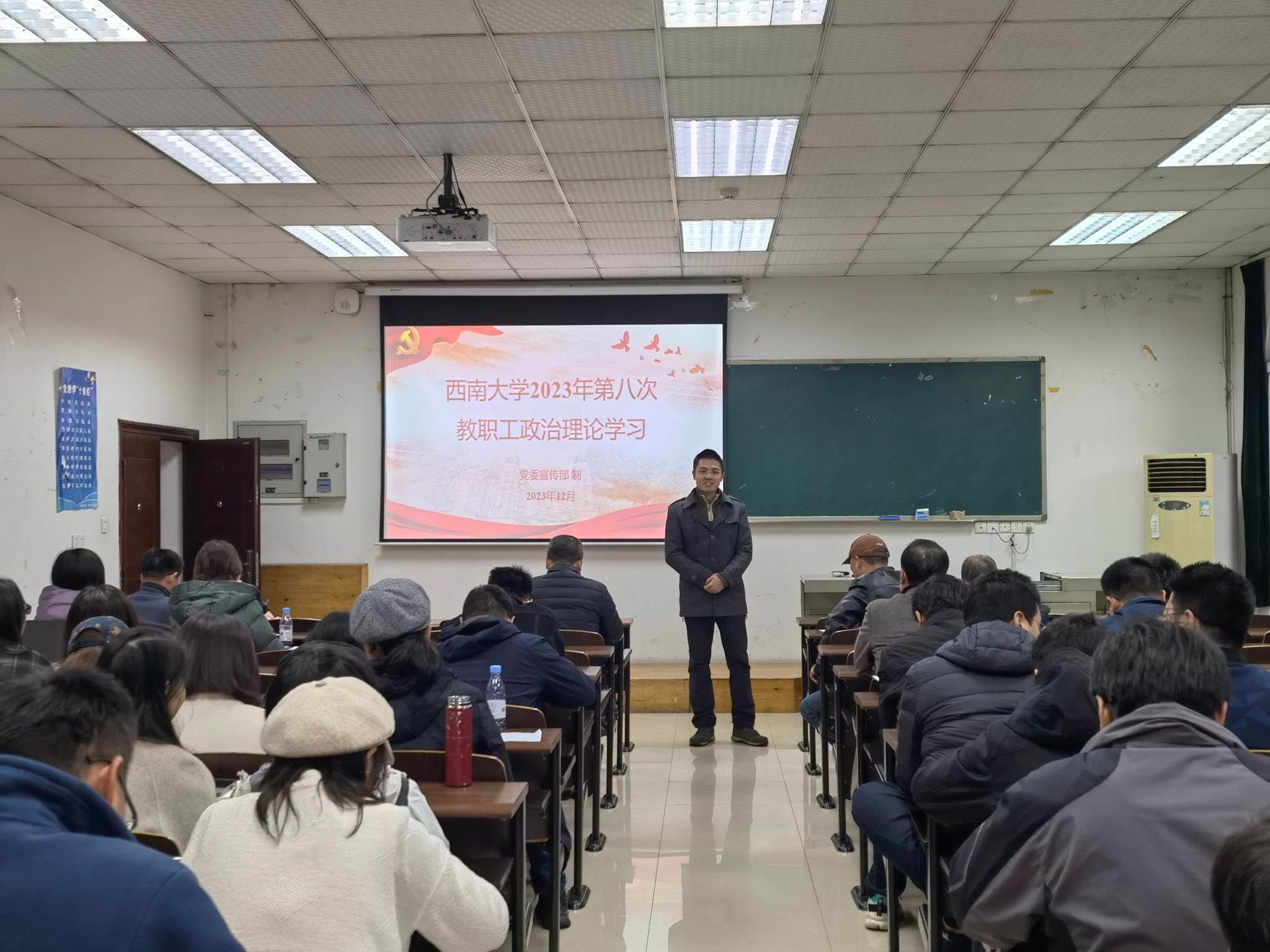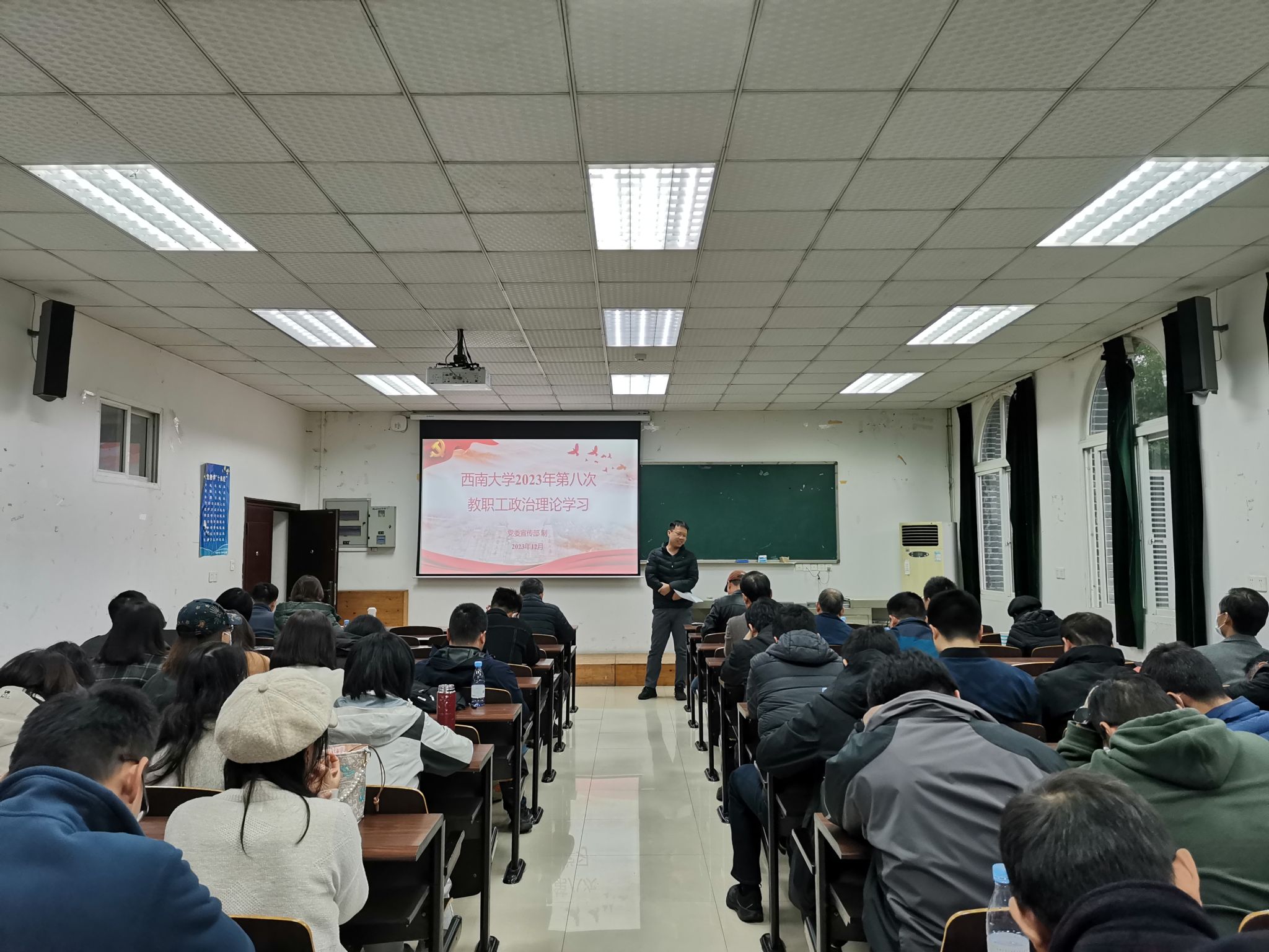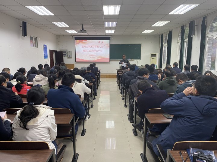 2023年12月1日下午2:30,公司在34教322开展2023年第八次教职工政治理论学习,全院教职工参会。会议由党委书记唐荣发主持。