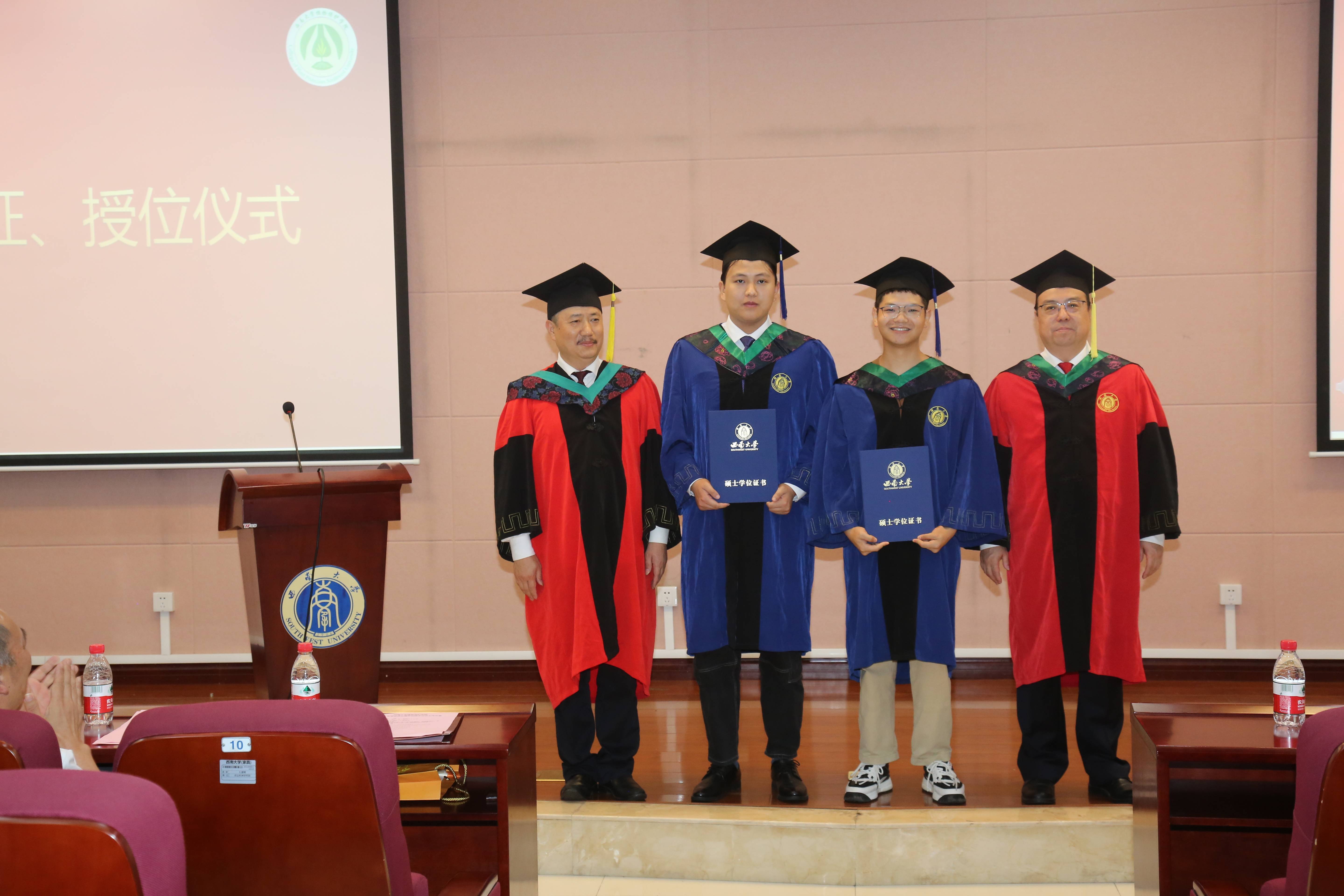 在激昂奋进的音乐声中,王进军副董事长为全体博士毕业生逐一颁发毕业证书并合影留念;院学术委员会委员王进军教授、刘怀教授、何林教授、蒋红波教授、杜喜翠教授、豆威教授为硕士毕业生颁发毕业证书并合影;王进军副董事长和刘怀经理为毕业生颁发学位证书并授位。