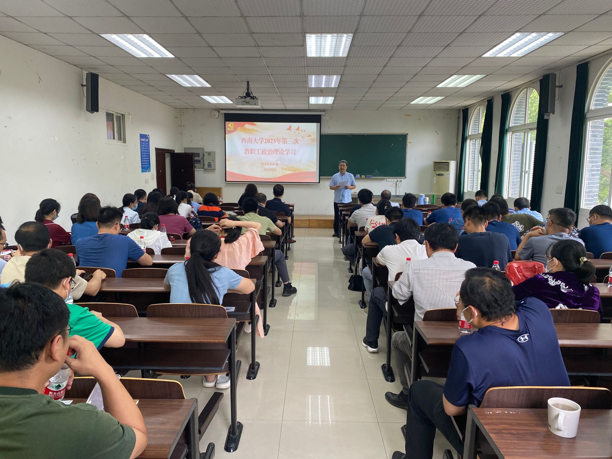 5月5日下午2:30,在322会议室召开2023年第三次教职工政治理论学习,经理刘怀主持会议。