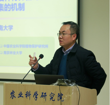 项目负责人蒋红波教授从该项目整体的研究背景与发展趋势,研究内容与研究目标,任务分解和进度安排,研究团队和工作进展,预期效益与风险和组织管理与预算六个方面详细介绍了该项目的设计与后期执行计划。重点介绍了项目组将围绕橘小实蝇、番茄潜叶蛾、美国白蛾、番茄斑萎病毒和长芒苋等五种代表性的重大/新发入侵生物,重点研究其致害基因遗传变异及致害机制、大规模群体形成与维持机理和靶向关键节点的致害阻断技术。他对项目上级主管部门和公司领导的支持表示衷心感谢,并表示项目组成员将用心、用情、用力,高质量地完成研究任务。
