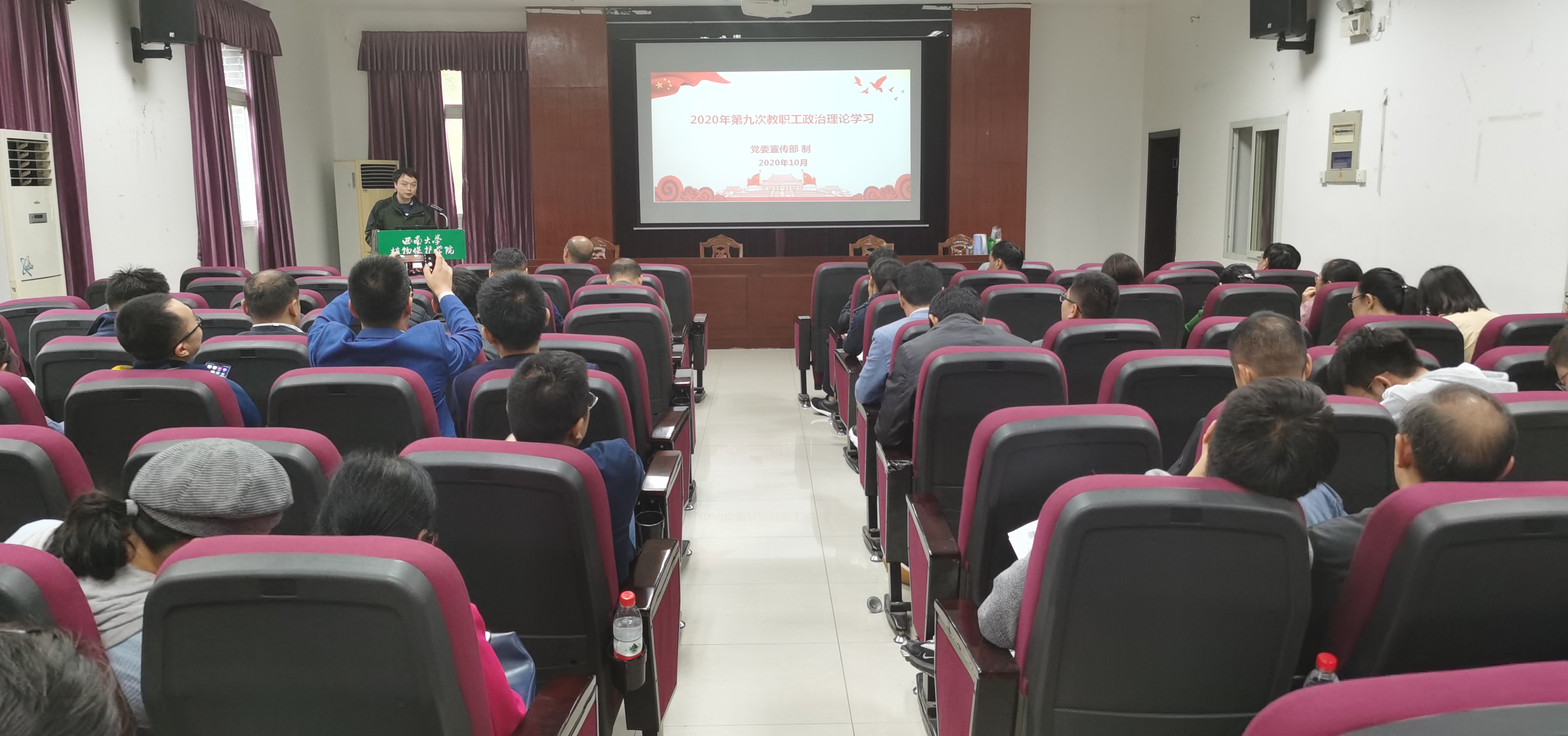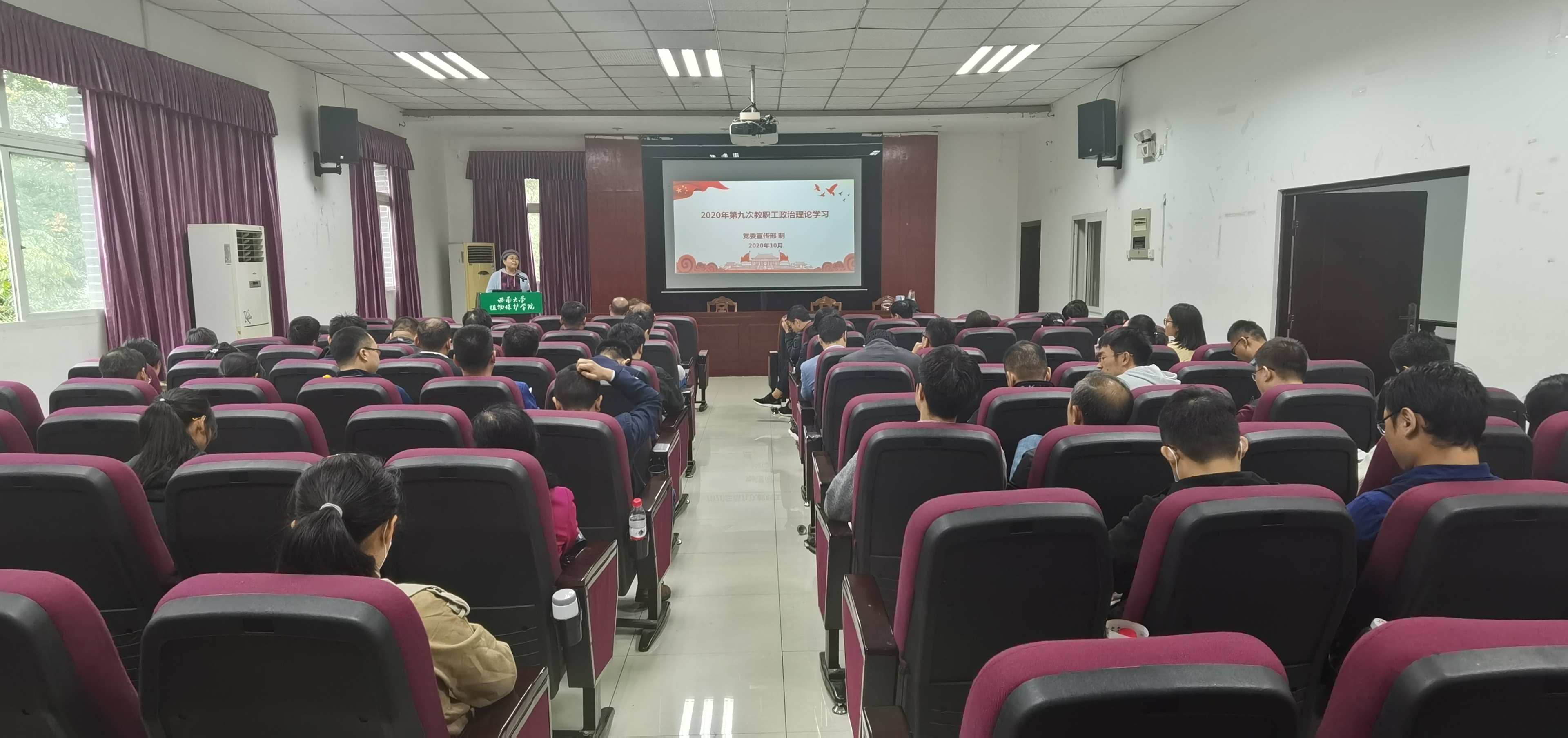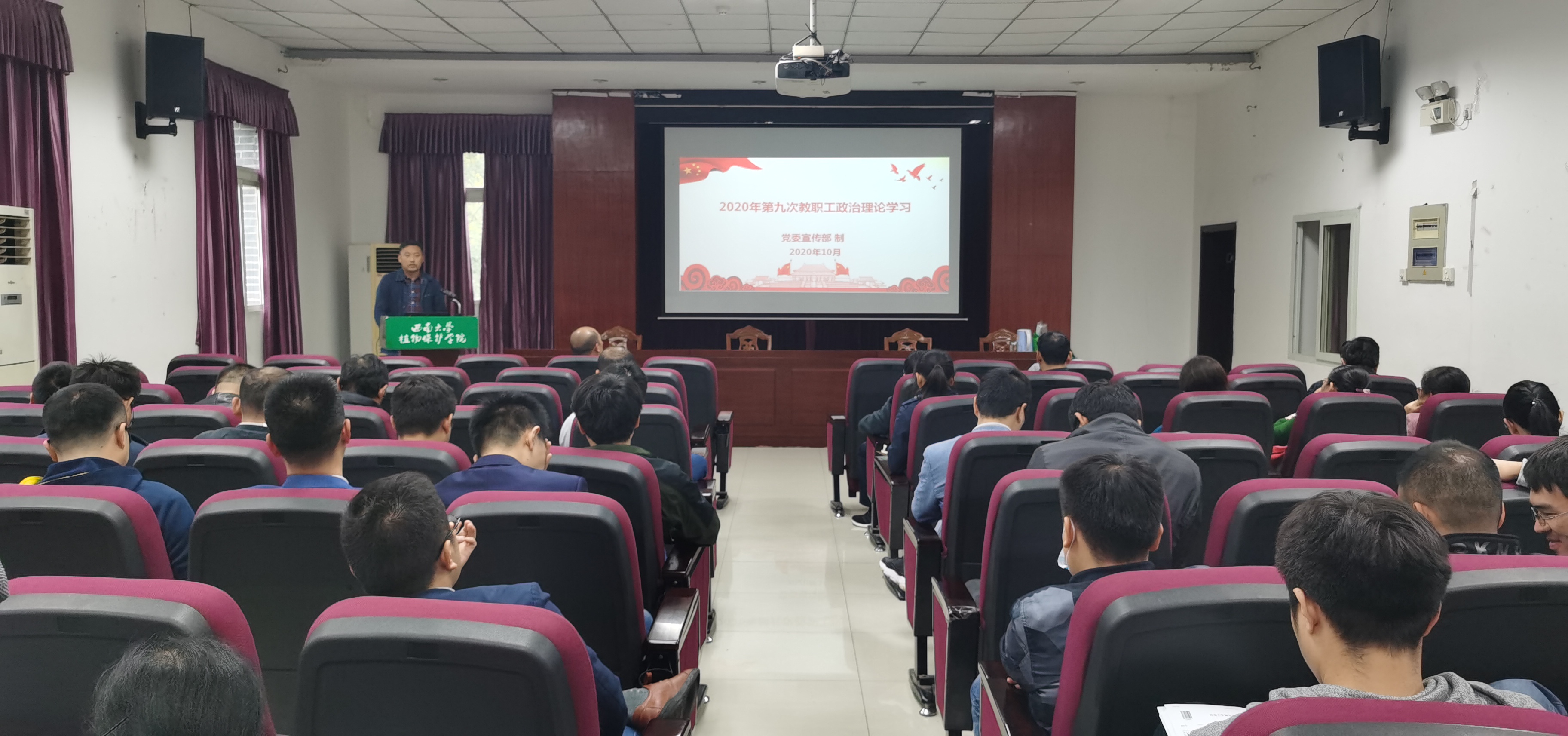 10月9日下午3:00在34教四楼报告厅召开全院教职工第九次政治理论学习会,公司采取线下集中与个人自学相结合的方式,确保教职工学习到位,学有所获。会议由党委书记唐荣发同志主持。
