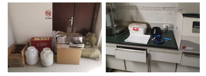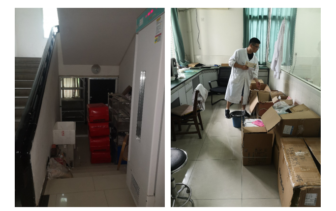2、实验室过道以及室内物品摆放凌乱。