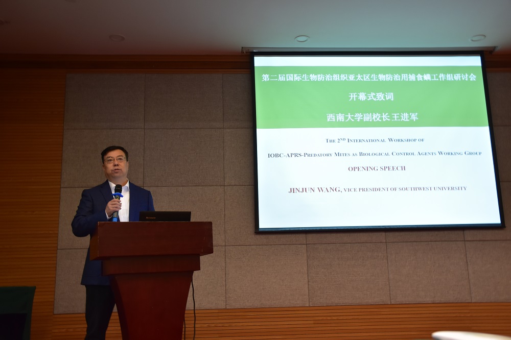 王进军副董事长代表公司致辞,对各位专家的到来表示欢迎,向参加会议的各位专家介绍了公司在螨类研究方面的历史、概况及未来发展前景等。IOBC-APRS副主席高玉林为本次会议的召开送上祝福,希望借助这次机会能够促进捕食螨和生物防治其他领域在研究和应用方面的国际交流与合作。