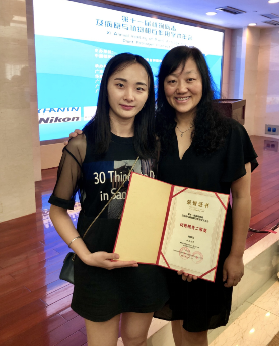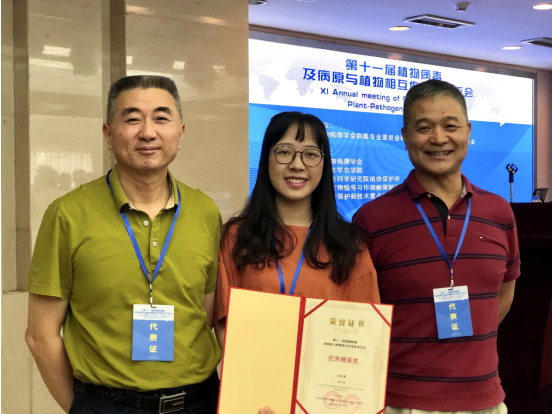 10月8日晚上,大会组委会主席、北京大学李毅教授主持开幕式,随后来自美国加州大学Dinesh-Kumar S.P.教授和中科院遗传发育所周俭民研究员做了有关植物免疫信号传导的精彩报告。本次学术年会还邀请到MPMI主编Jeanne Harris教授、美国加州大学河滨分校的Hailing Jin教授、美国肯塔基大学的Peter Nagy教授、美国马里兰大学的Anne Simon、加拿大农业部Aiming Wang教授,以及新加坡国立大学Seq man Wong等国内外知名专家做大会报告。在短短的三天时间里,共有44位教授做了研究进展报告,其中,我校周常勇研究员向海内外专家分享了“我国柑橘黄龙病和黄脉病研究进展”。大会还设立了青年学者论坛,有18位博士生分享了他们的科研进展。我院青玲教授指导的博士生荆陈沉在青年学者论坛做了“赛葵黄脉病毒编码C4蛋白参与病毒致病作用机理研究”的报告,经评比获得优秀报告二等奖的好成绩;多名硕士生也分别以墙报形式和会议摘要形式分享了科研进展,其中,周常勇研究员和曹孟籍副研究员指导的硕士生吴佳星喜获“优秀摘要奖”。