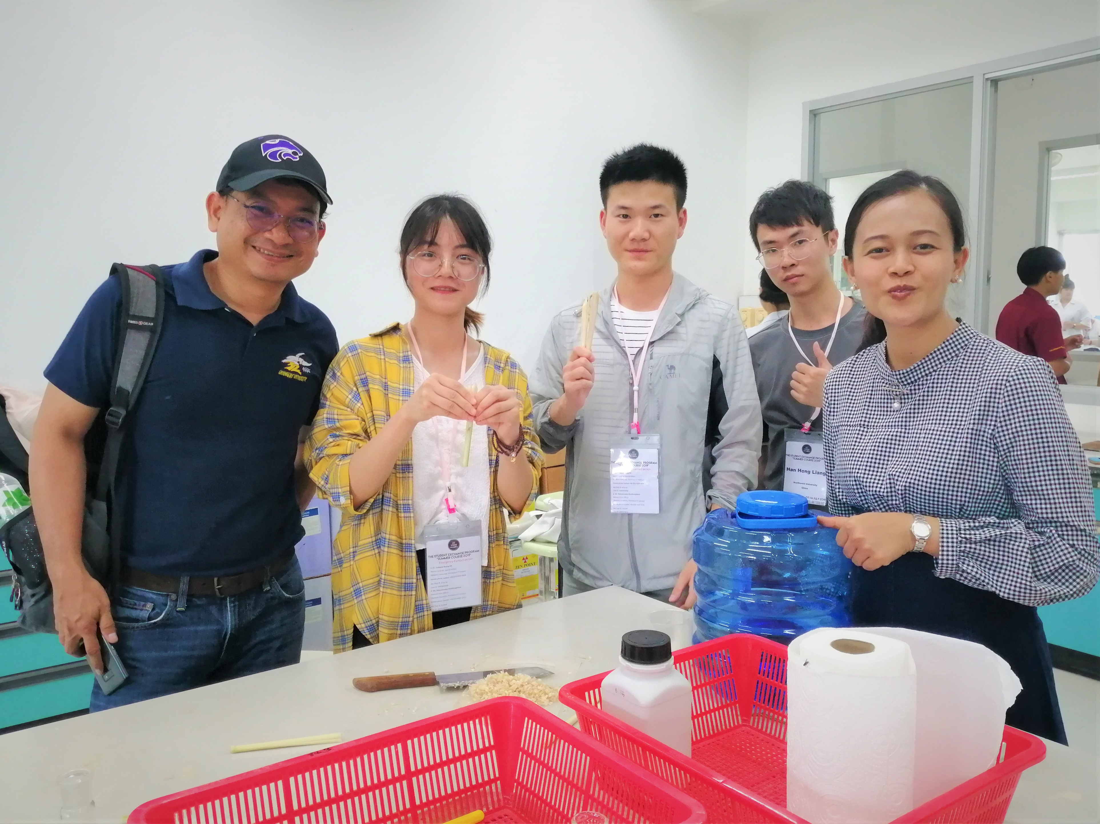 随后几日,同学们参与了文化语言交流、农业生产实践、实验操作、员工交流互动、田野考察等活动。来泰参与此次项目各院校代表分别分享了当地国家和地区语言文化、风俗习惯。ASAT几位老师对ASAT的教学与科研团队的研究方向和成果进行了简单介绍,加深了同学们对ASAT的了解。在农业生产实践方面,同学们在ASAT实验农场体验了挤牛奶并学习运用CMT检测法快速检测牛奶质量、学习了鱼的人工授精技术及有机肥料制作过程等实践操作,同学们通过这些实践活动深刻认识到了将平时所学知识理论运用到实践中的重要性,了解到有机肥料对于延缓土壤肥效、增产增收及环境保护的重要作用。在农业科技与市场化结合方面,同学们参观了毗邻于泰国艺术大学Cha-am校区的奶牛饲养场、观赏鱼市场和大型兰花基地;在实验操作方面,同学们在ASAT实验室学习和完成了香蕉组织培养、植物精油提取和农业科学中常用的分子技术应用三个实验。在田野考察中,同学们详细聆听了国王拉玛九世的倡议项目“怀赛皇家发展研究中心”的发展背景和成果,了解了拉玛九世对当地生态环境恢复与保护的卓越贡献,并实地参观学习了在水土流失严重的山坡上恢复植被的方法技术;当天下午,同学们前往当地农场参观了对基于农业发展的有效经济哲学的应用,受益匪浅。