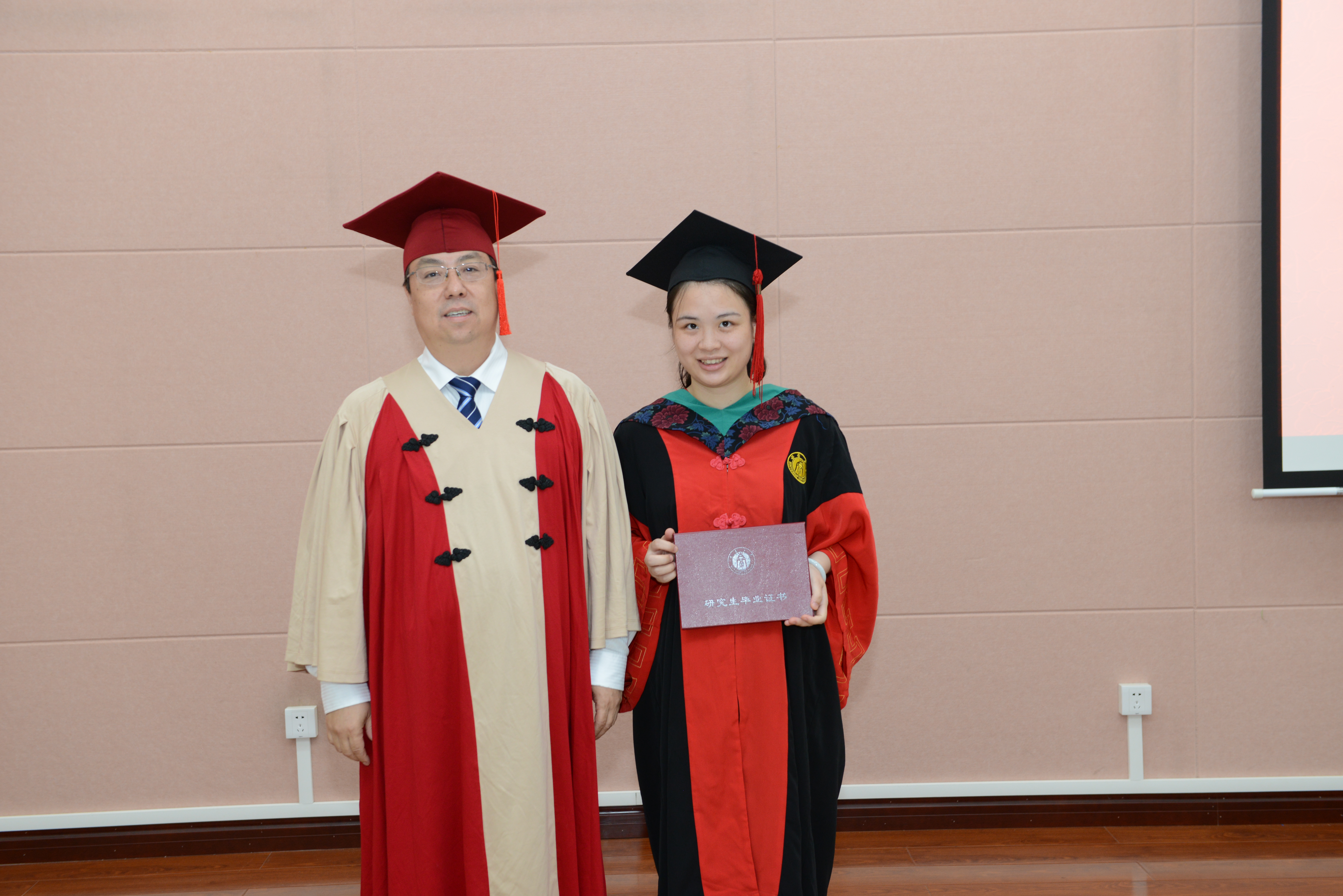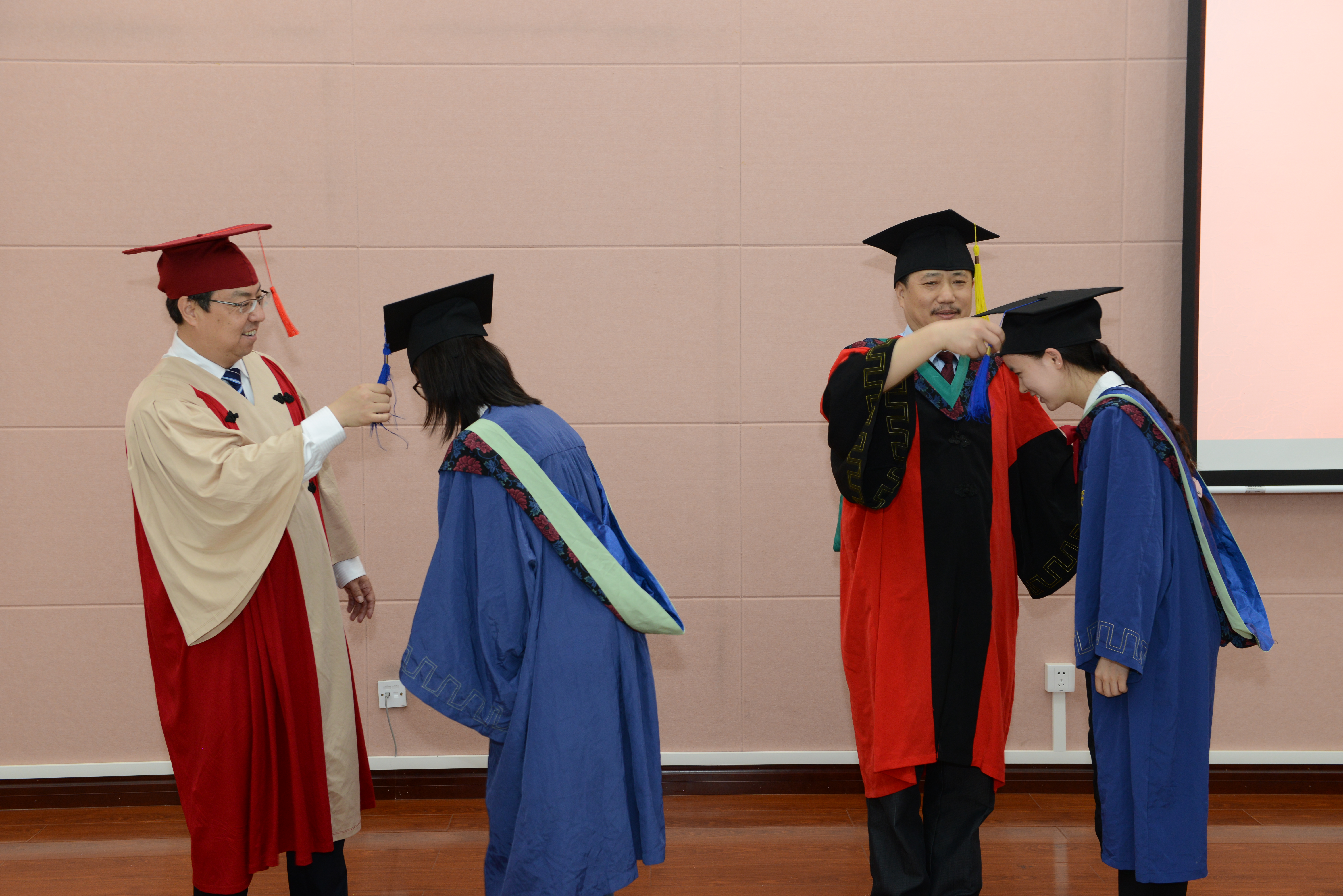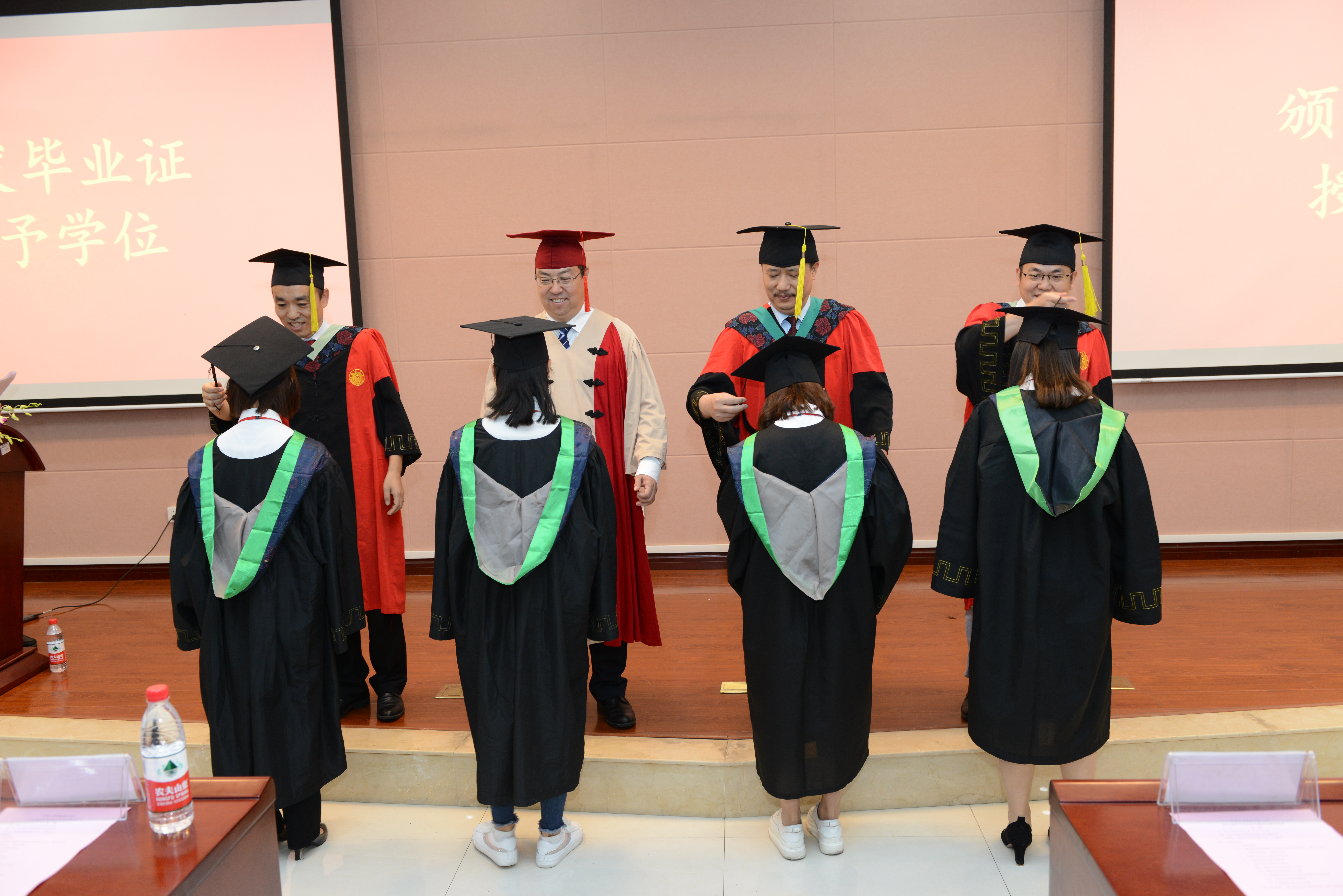 接下来,王进军为2019届博士毕业生依次颁发毕业证书。公司学术委员会委员王进军、刘怀、蒋红波、豆威为2019届毕业生拨穗。