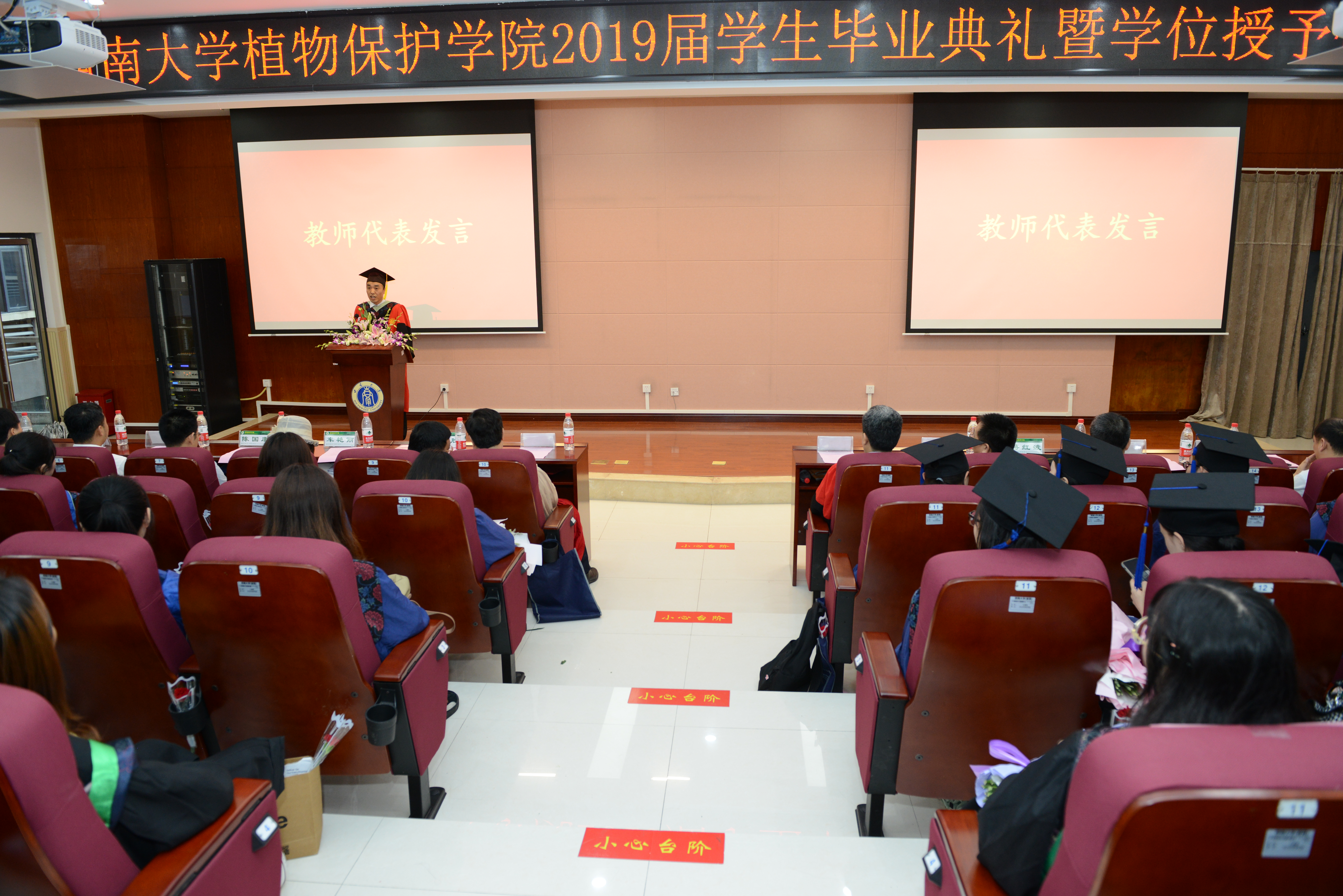 首先由李玉胜宣读毕业、授位文件,并祝贺2019届全体毕业生顺利毕业。