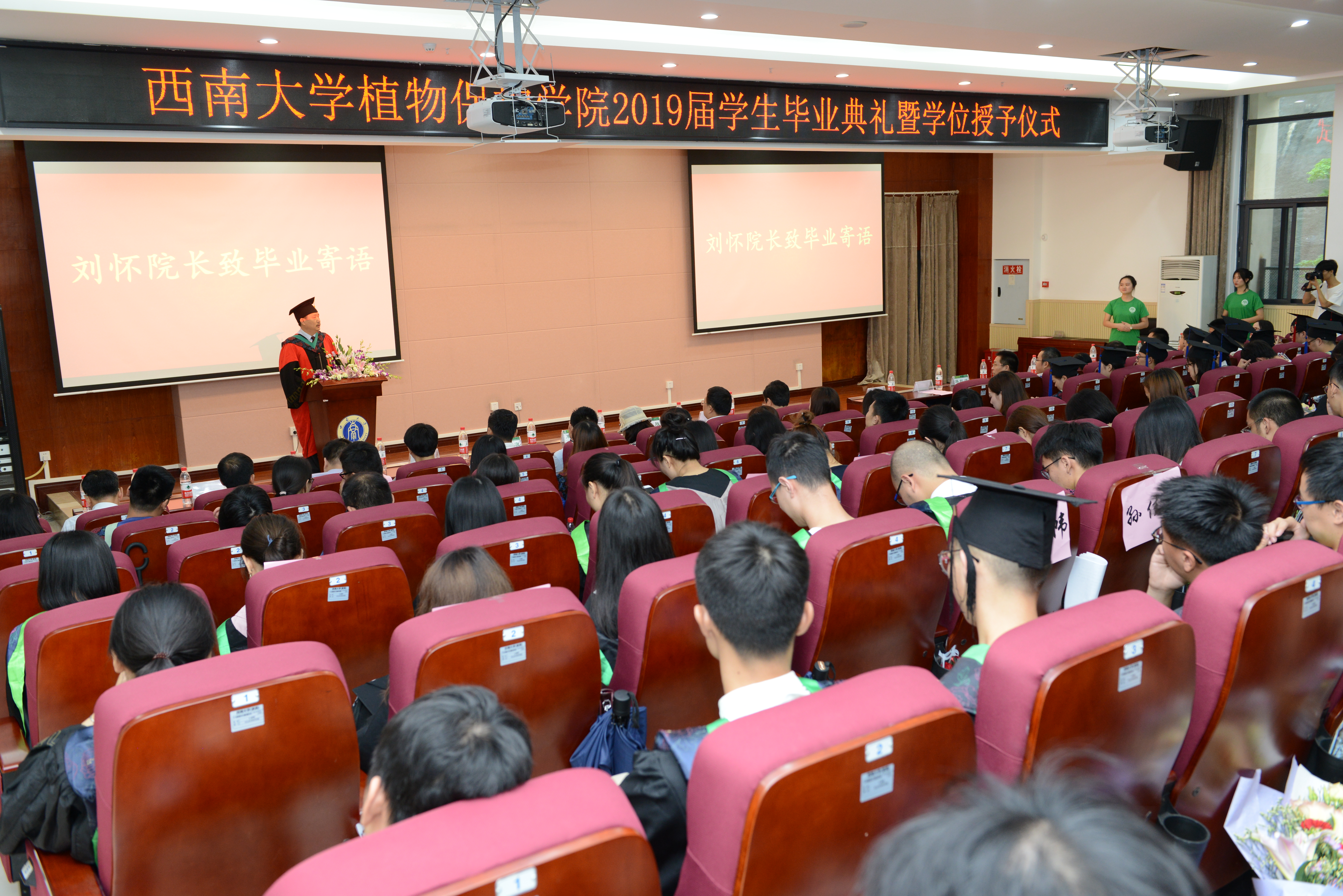 刘怀向全体毕业生致毕业寄语。他向圆满完成学业、即将开启新征程的全体毕业生致以最热烈的祝福和最美好的祝愿。同时,向全体毕业生提出三点希望:一是爱祖国,奉献自我;二是爱事业,实现自我;三是爱家庭,幸福生活。
