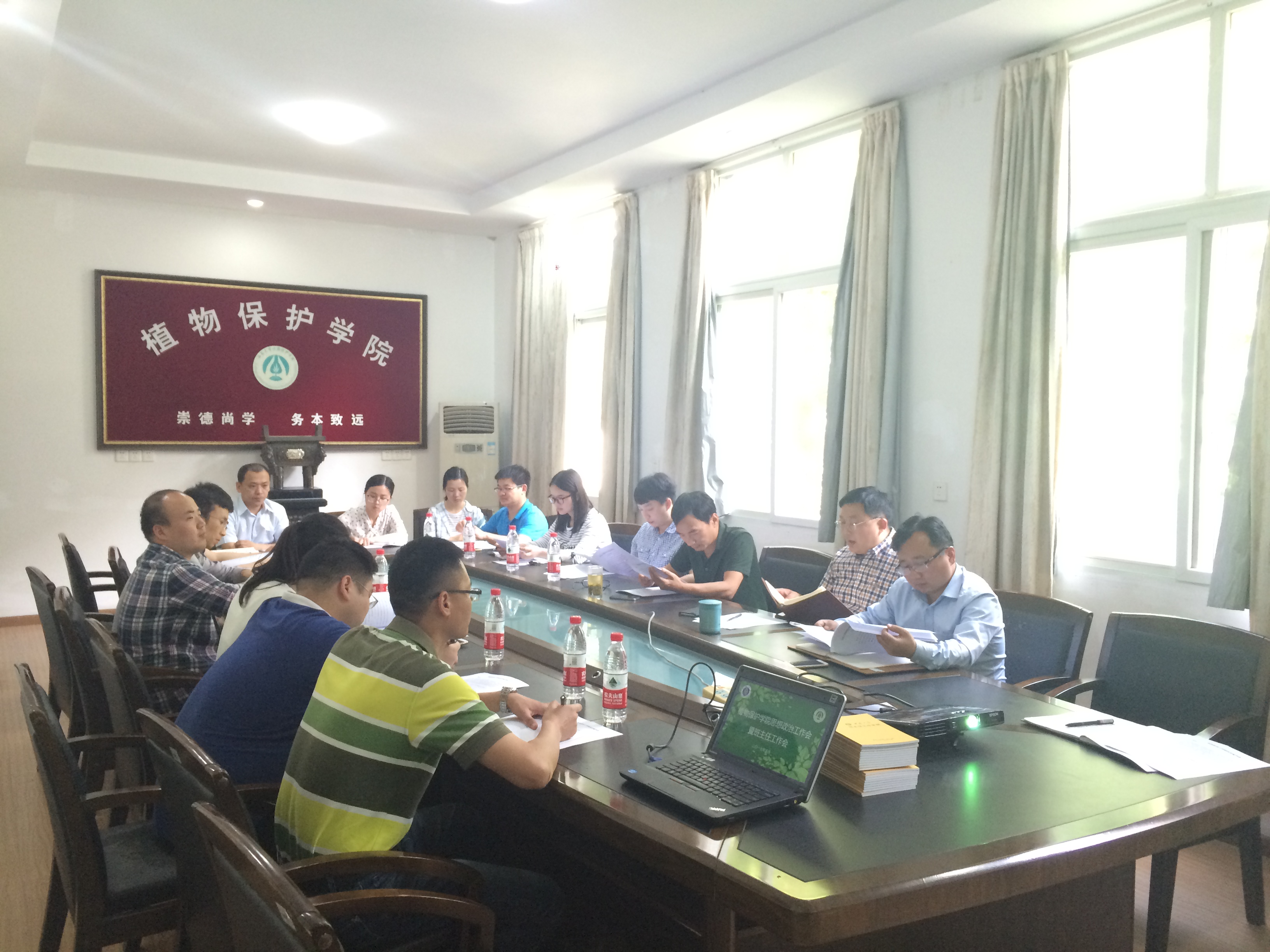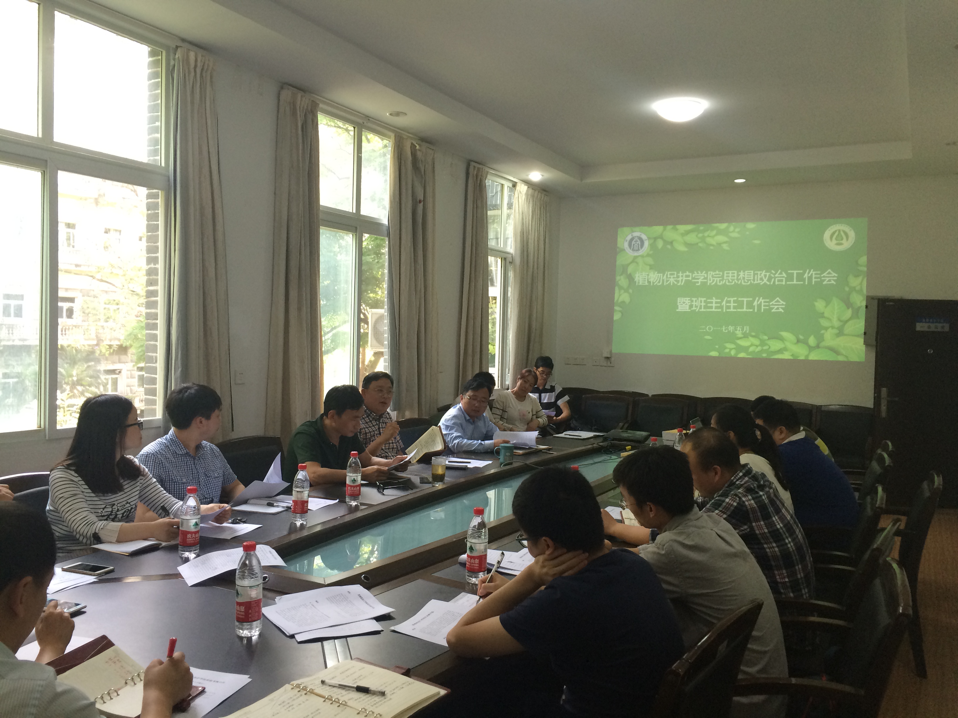 5月16日下午,植保公司思想政治工作会暨班主任工作会在219会议室召开,公司党委书记王亨洪、副书记李玉胜带领大家学习习近平总书记在中国政法大学考察的讲话精神以及中央31号文件等,强调班级管理及毕业生工作,各年级辅导员、全院班主任参会。