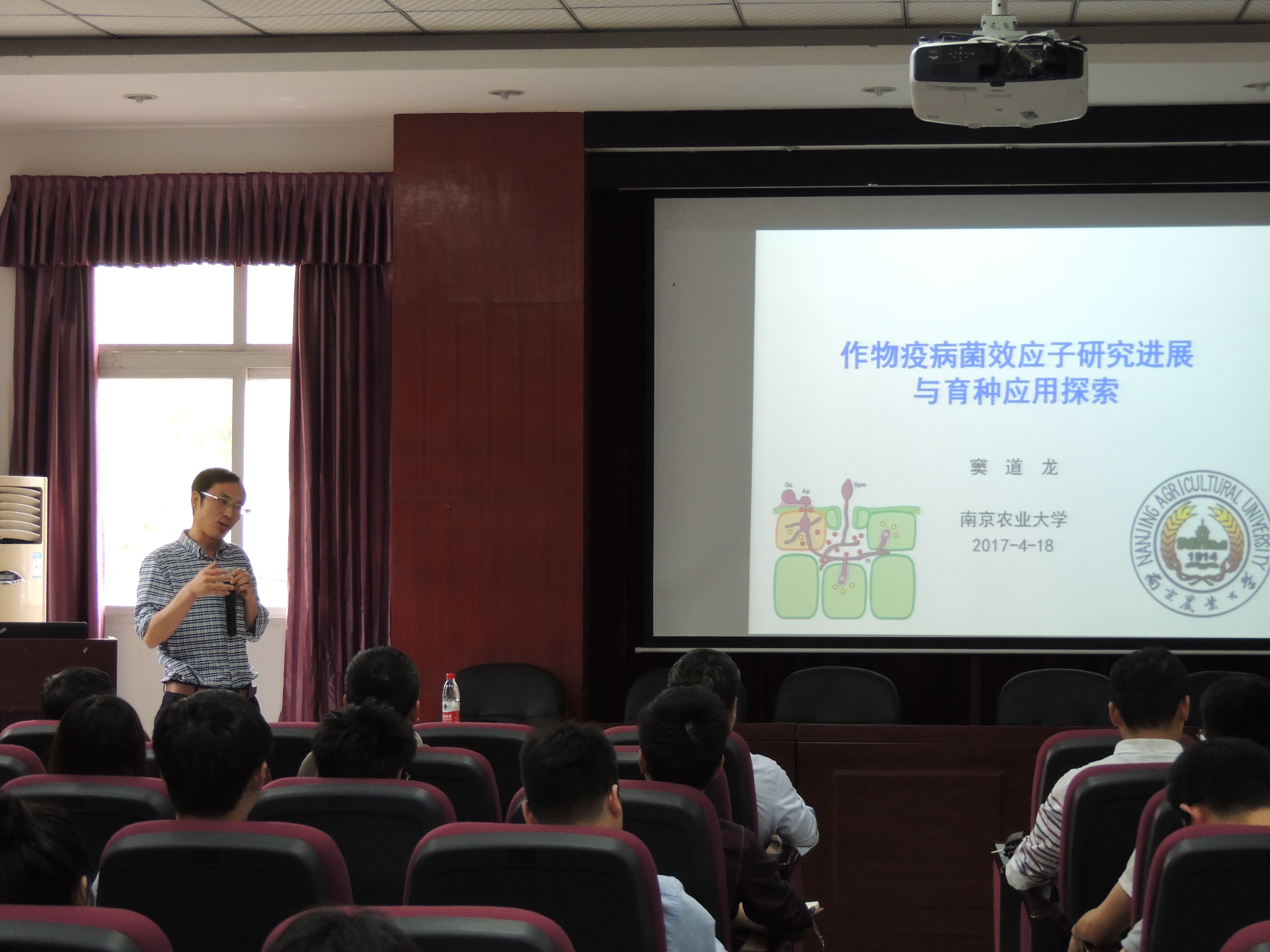 “作物抗虫性的诱发与昆虫的反防御策略”的学术报告,他详细介绍了其实验团队在水稻抗虫防御的信号途径、硅对水稻抗虫性的诱导作用以及有益微生物对作物抗性的诱导等方面的研究成果。随后南京农业大学窦道龙教授带来“疫霉菌效应子基础研究进展与应用初探”的报告,窦教授长期从事疫霉菌与植物互作和调控研究,其研究团队在疫霉菌效应子的鉴定、功能与作用机制解析以及抗病育种利用等方面取得的突出成绩。最后,湖北老员工命科学公司博士研究生导师、国家“国家级人才”入选者、德国马普伙伴小组组长张江教授做了“质体介导的RNAi抗虫机理与应用”的报告,就其所研究的质体介导的RNAi抗虫机理与应用做了详细介绍。