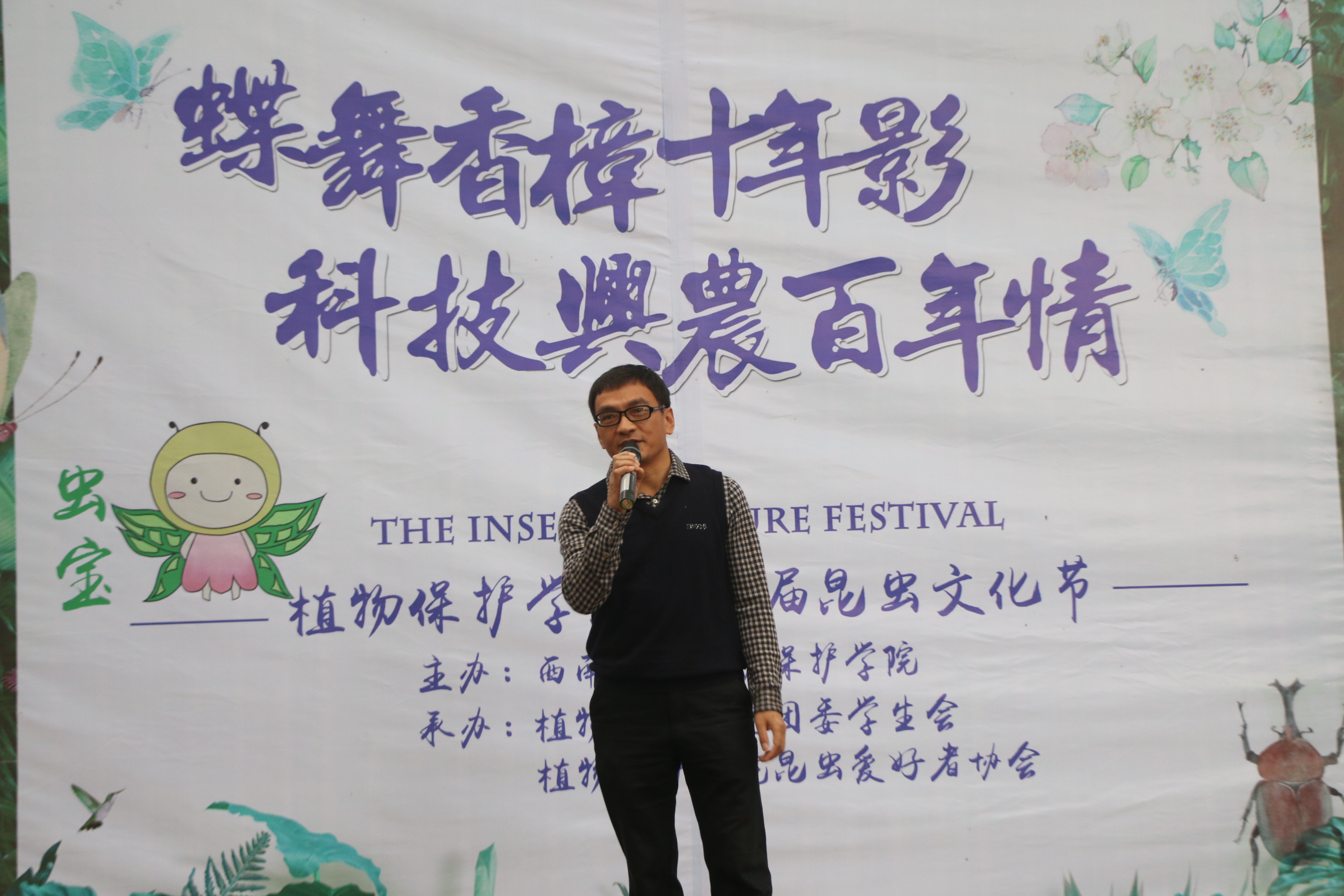 为庆祝昆虫文化节举办十周年,主办方设计了独具匠心的吉祥物“虫宝”,蕴含了校树樟树、校花玉兰以及蝴蝶等意象,预示着昆虫文化节走过十载的风风雨雨,科技兴农百年更加兴盛。本次文化节活动场地主要分为学术、展览、体验、美食、游戏五个不同的功能区,每个区域都各具特色与亮点。