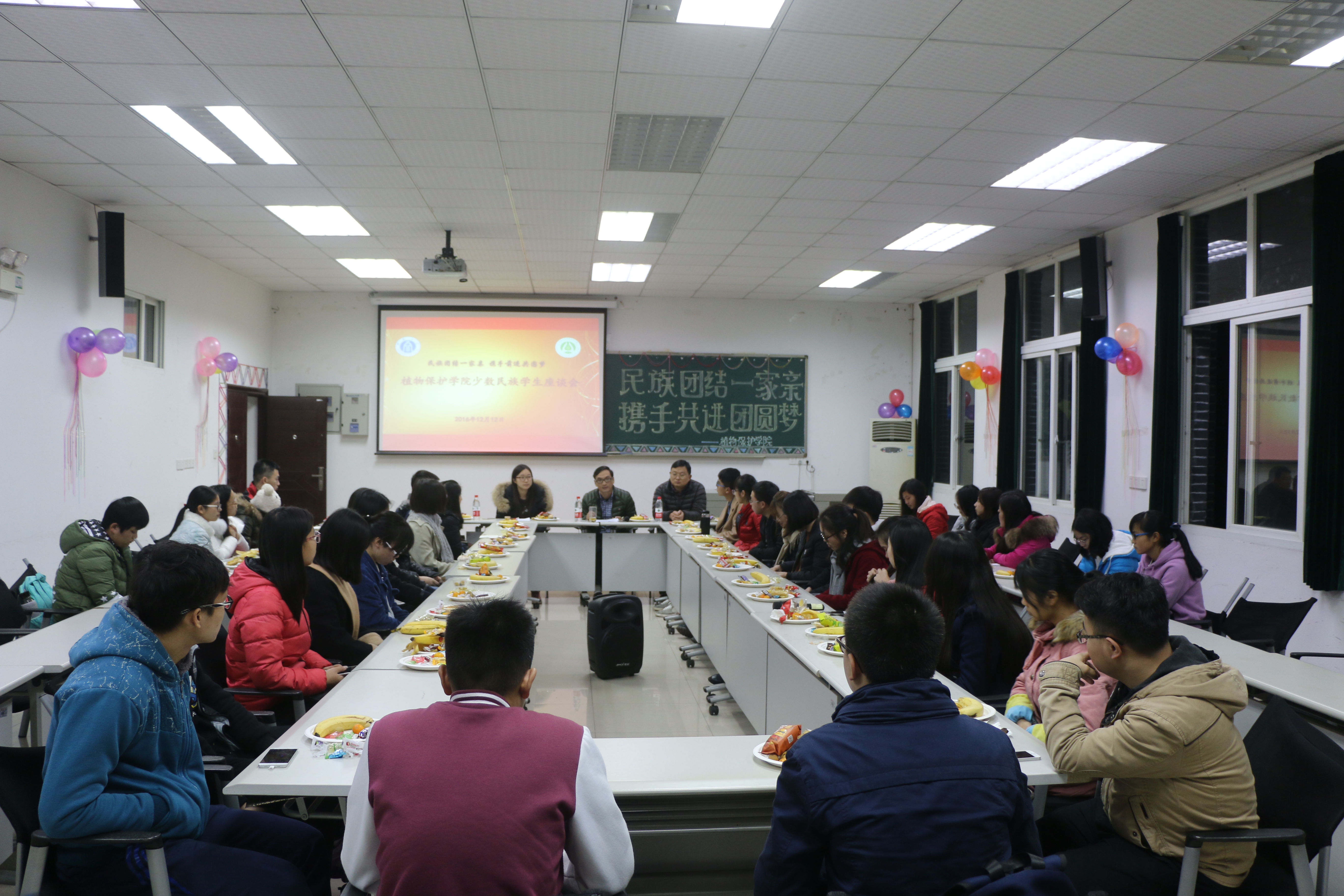 紧接着,全体员工依次自我介绍,大家提到自己的姓名、年级、家乡以及本民族的风俗特色、特有节日等,有的还唱起了民族歌曲,现场一片欢声笑语。在师生互动交流环节,同学们互相分享自己从入校以来学习、生活上的心得体会,在公司受到的各类资助与帮扶给自己带来的变化,对大学、研究生生活的认识以及自我的转变,同时还就自己思想、学习、生活上遇到的困难提出自己的意见和建议。