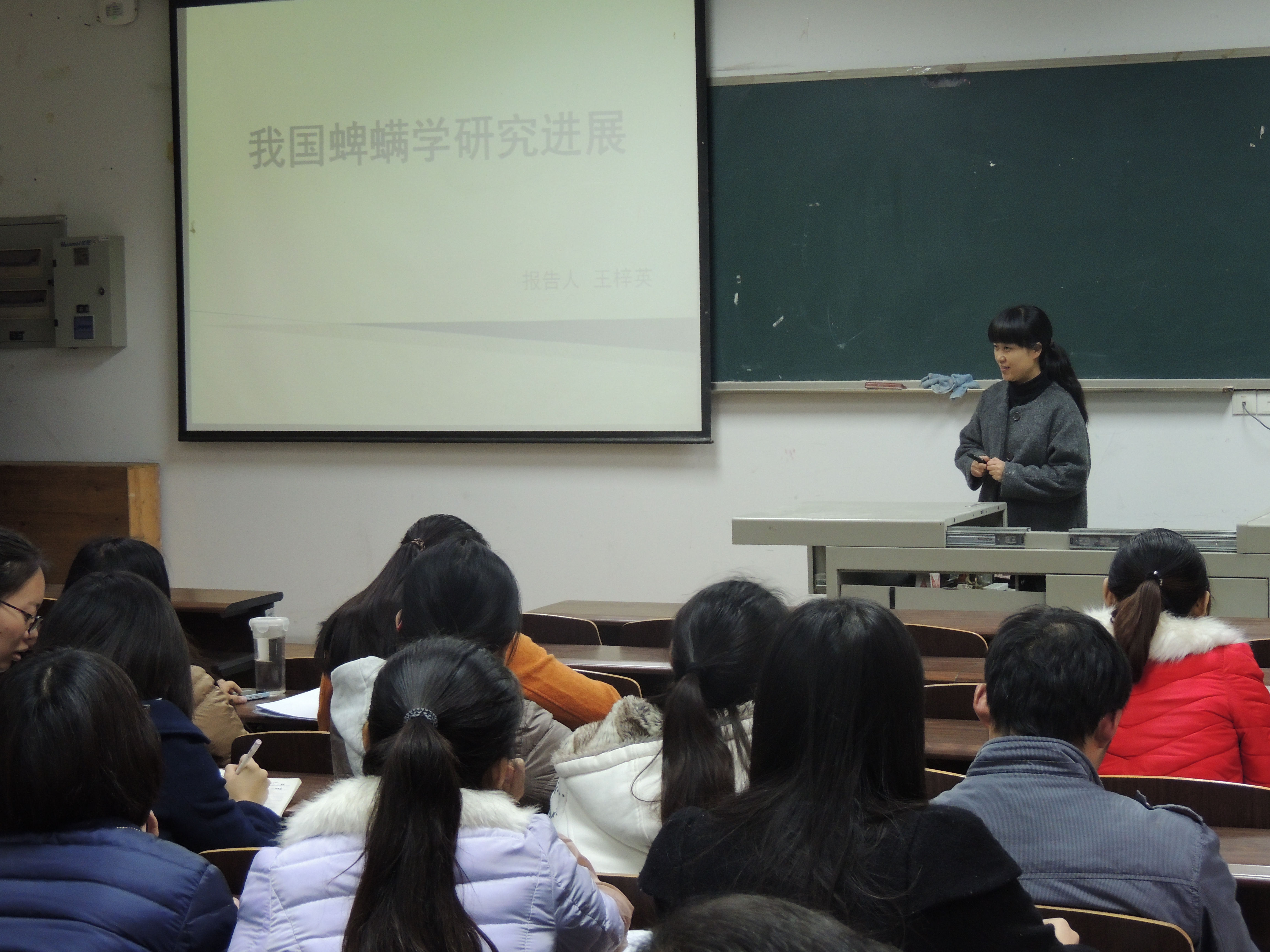 近年来,“蜱叮咬事件”使蜱螨学引起了大众的广泛关注,王老师从蜱螨学的研究历史、目前状况和我国研究进展三个方面进行了系统详实的介绍。首先,王老师从蜱和螨的生理结构和它类似于蜘蛛的形态特征,对蜱螨进行了直观的描述。其次,她指出相对于动植物分类,蜱螨学的分类系统还很不完善,其分类系统的完善还需要大量人才才能实现。科学是一门不断攀登、不断完善的学科,王老师鼓励在座的同学们努力学习,勇攀科学高峰。最后,王老师充满信心的对我国蜱螨学研究状况进行了总结,原西南农业大学员工李隆术先生作为我国甚至是世界蜱螨学的奠基人,其教导的员工是现代中国蜱螨学的领导者,我国蜱螨学研究有医学蜱螨学、捕食螨、害螨生理生化研究和螨类系统学研究,其中公司的害螨生理生化研究在全国处于领先水平。