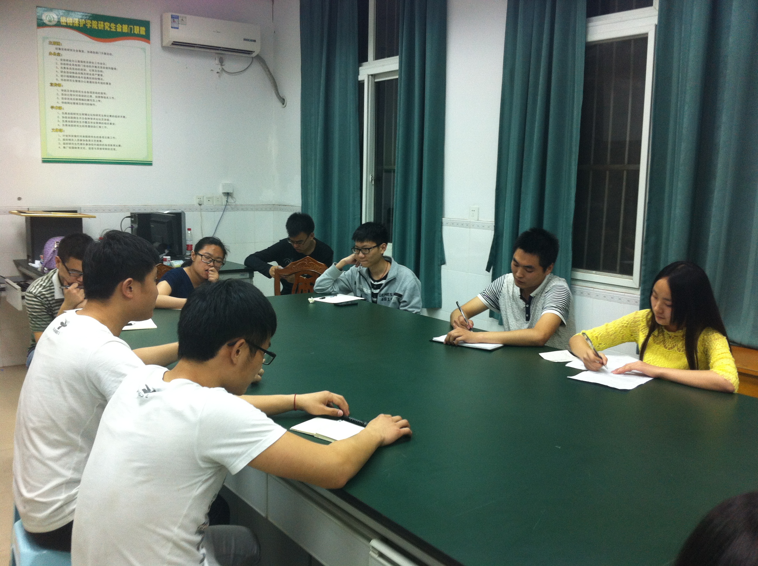 2015年4月3日晚8点,在伟德体育研会办公室进行了研究生辩论队人员选拔。来自研一的八位同学分成两组,进行了两场辩论比赛。