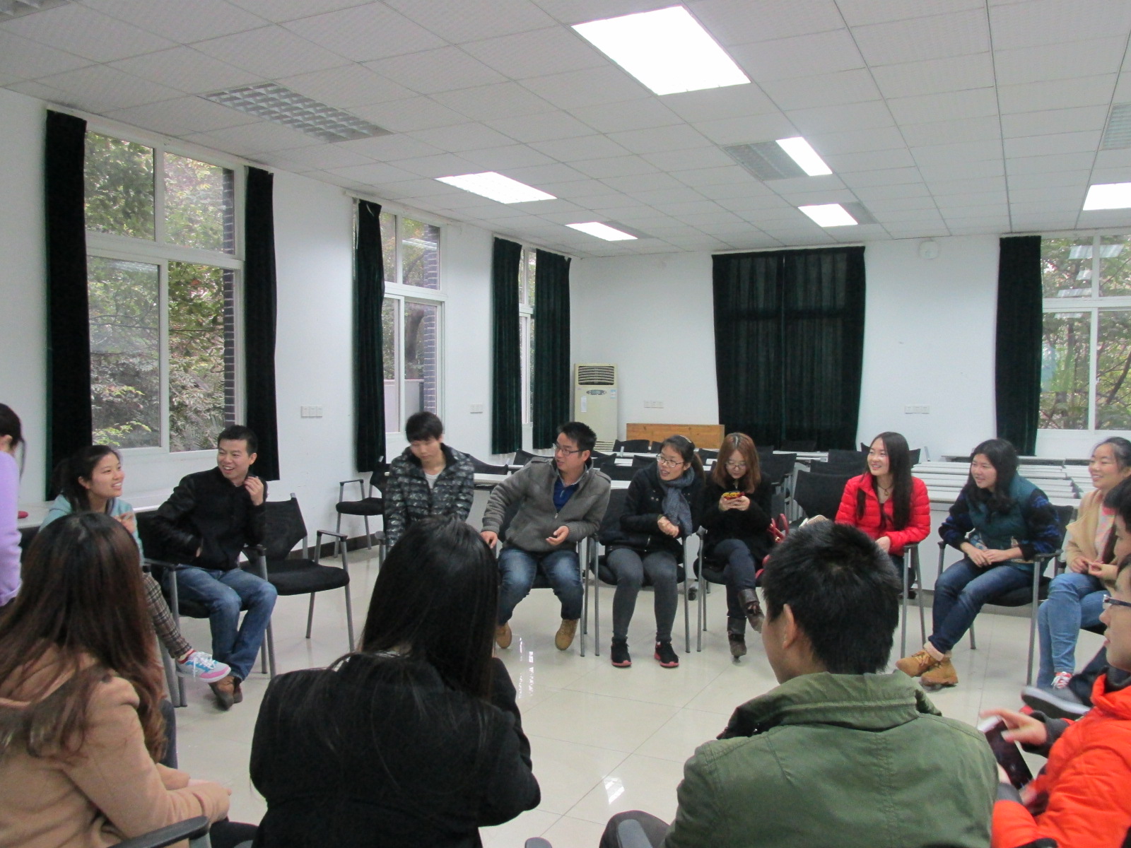 11月21日下午3:00,由公司研会组织,心理学部研究生会提供心理辅导支持的“第七届研会素质拓展活动”成功举办。活动开始前,公司研究生代表表达了对参与此次团辅活动的心理学部研究生会的热烈欢迎,接着,主持此次团辅活动的心理学部研究生会代表覃恺洋和全欢向大家作了简单的自我介绍以及简洁地讲解了有关团辅活动的知识和规则。