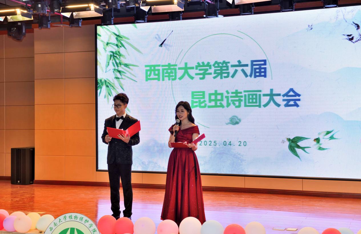 4月20日,bevictor伟德第六届昆虫诗画大会在隆平楼4楼报告厅圆满落下帷幕。本次大会以“蝶引芳菲穿画幕,蝉鸣新绿叩诗窗”为主题,旨在传播昆虫文化,激发员工们对昆虫的兴趣,提升科学与人文素养,弘扬中华优秀传统文化。公司党委书记刘立广、经理蒋红波、党委副书记陈园园出席活动,杜喜翠、魏丹丹、车艳丽、刘志萍、王梓英、李竹、尚峰、荣霞等八位老师担任大会评委。这场融合知识与艺术的盛宴,从一开始就吸引了全校众多同学地广泛关注与积极参与,同学们以诗画为媒介,展现昆虫世界的奇妙,以笔为媒,解密自然密码。