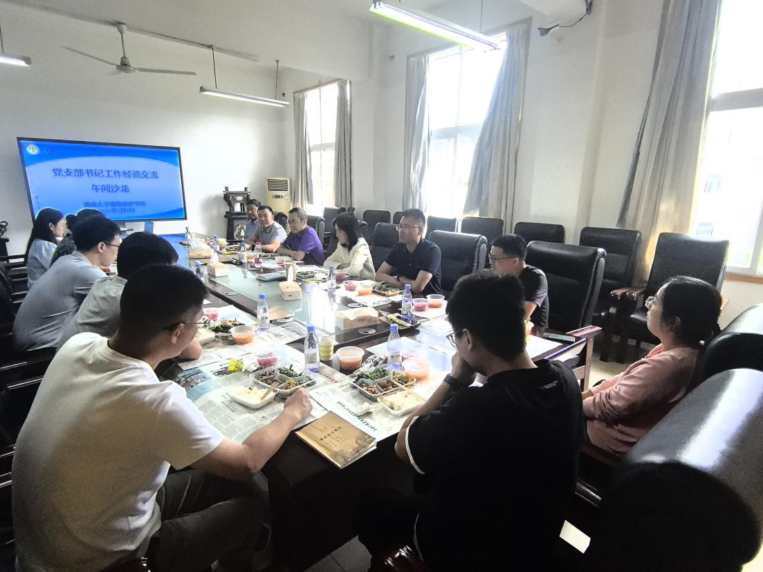 接着,党支部书记们结合支部实际,踊跃分享工作心得体会并提出好的意见建议。教工党支部提出,结合“田间课堂”,组织开展联学联建、组建特色岗服务科技创新等系列活动,积极发挥品牌效应,助力乡村振兴;研究生党支部提出结合践行党员“五个一”,通过组织研究生观影活动、赴产业园区调研交流的方式,提高党员参与度和积极性;本科生党支部提出依托员工党员服务队,为科技下乡惠农、科学知识普及和公司离退休教职工等开展志愿暖心服务。等等。