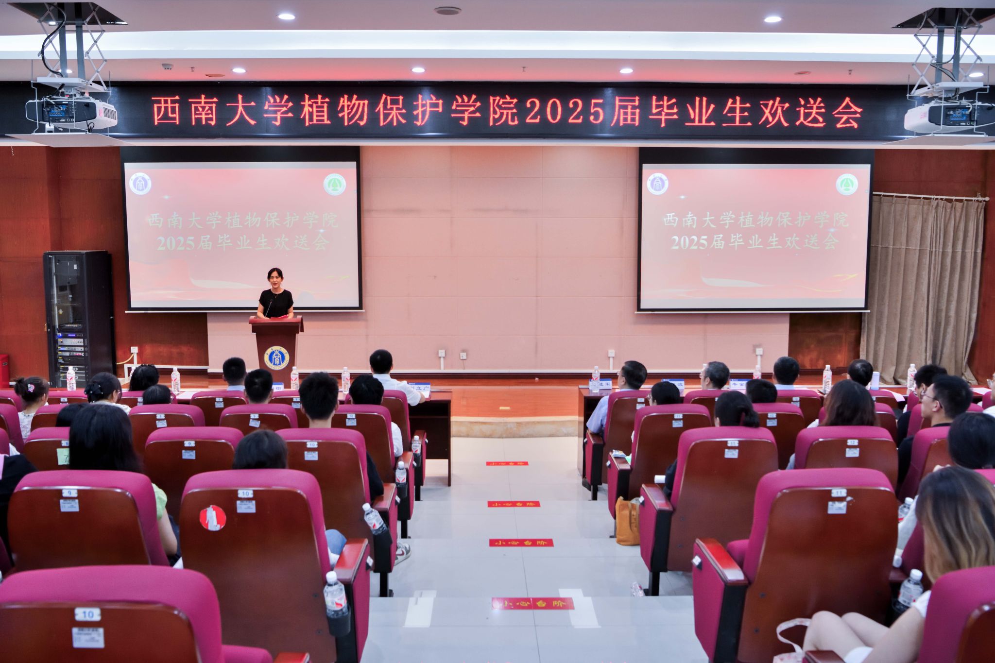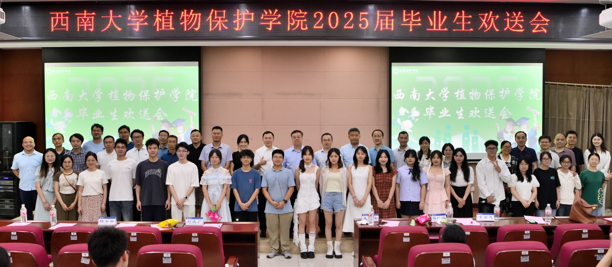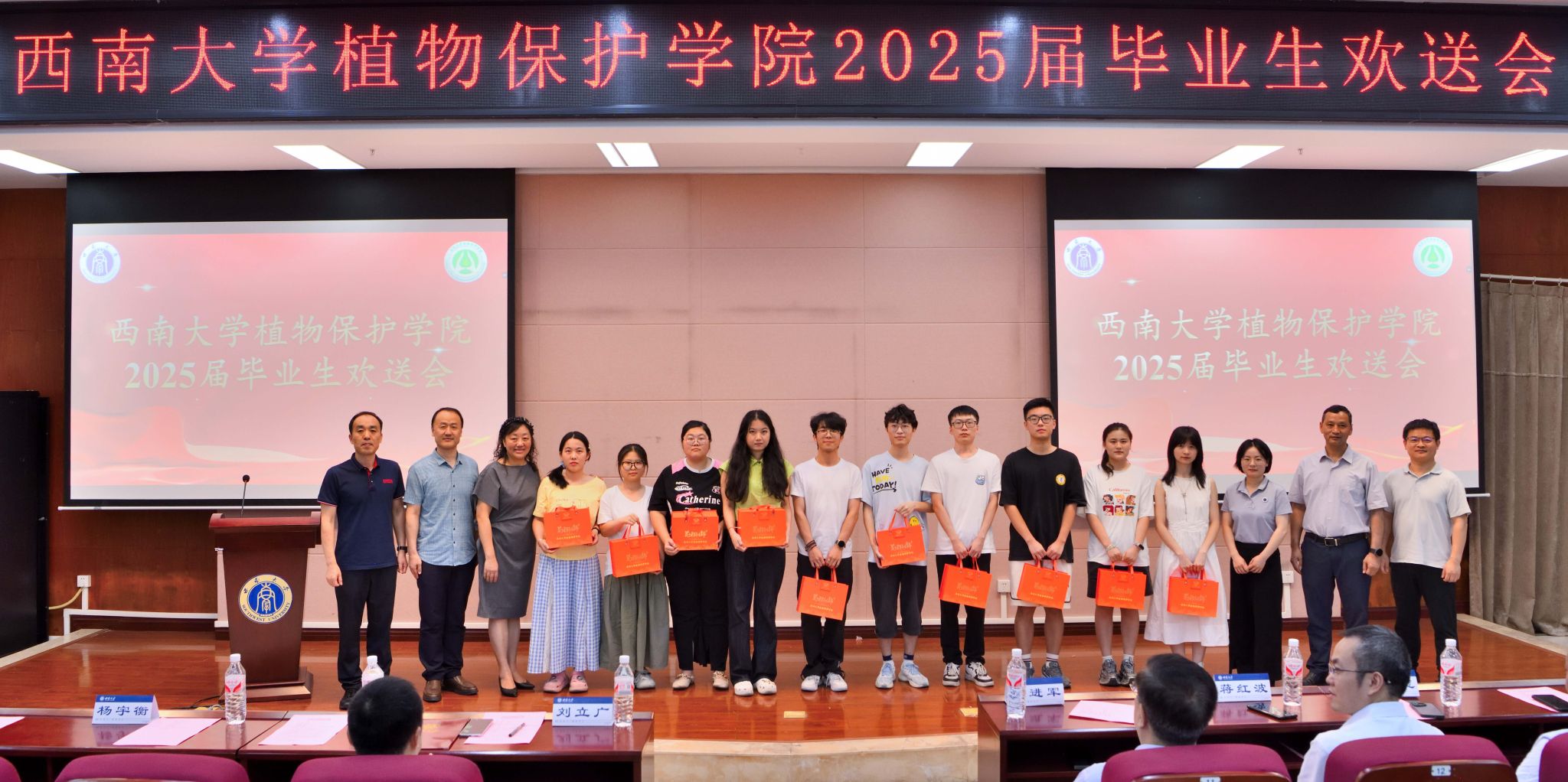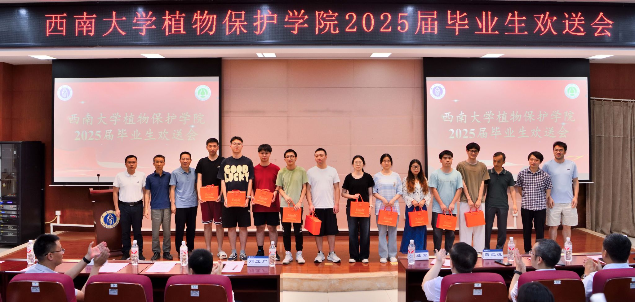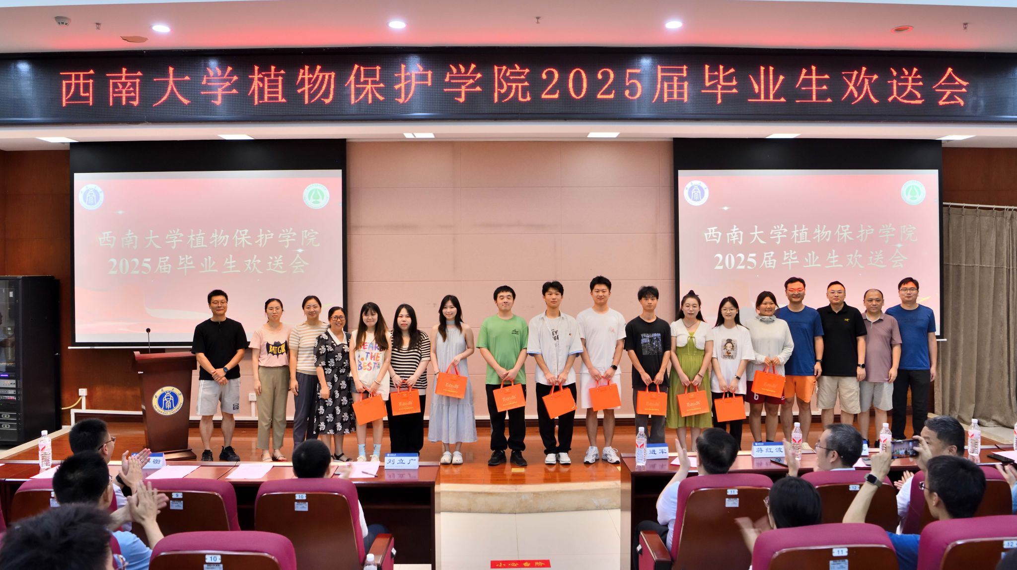 6月15日晚,伟德体育2025届毕业生欢送会在农业科学研究院204报告厅顺利举行。bevictor伟德董事长王进军教授,公司党政领导,教师代表、全体在校毕业生及低年级员工代表参加本次活动。毕业欢送会分为典礼和联欢两个部分,典礼部分由公司党委副书记陈园园主持,联欢部分由公司2024级研究生胡浩然、2021级本科生魏忠铃两位同学主持。