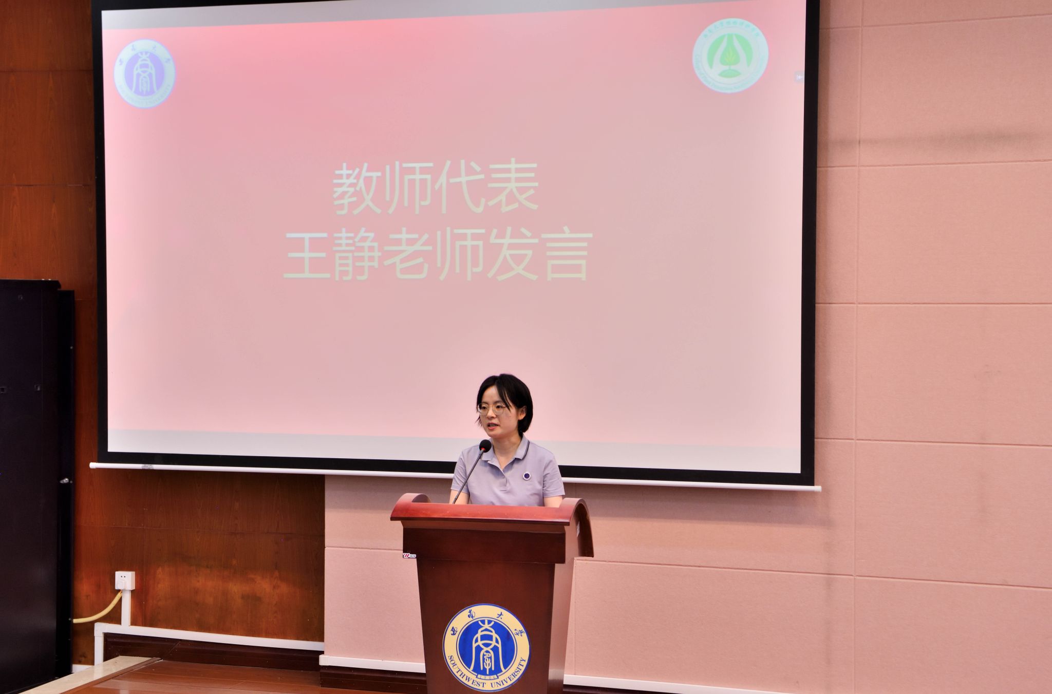 教师代表、植物病理系王静老师在发言中向全体毕业生表示衷心的祝贺与祝福,她希望大家能抓住机遇,不断地成长,积极去感受生命生活的幸福与美好。祝愿毕业生们前程似锦、未来可期,做一粒粒“向下扎根,向上发光”的种子。
